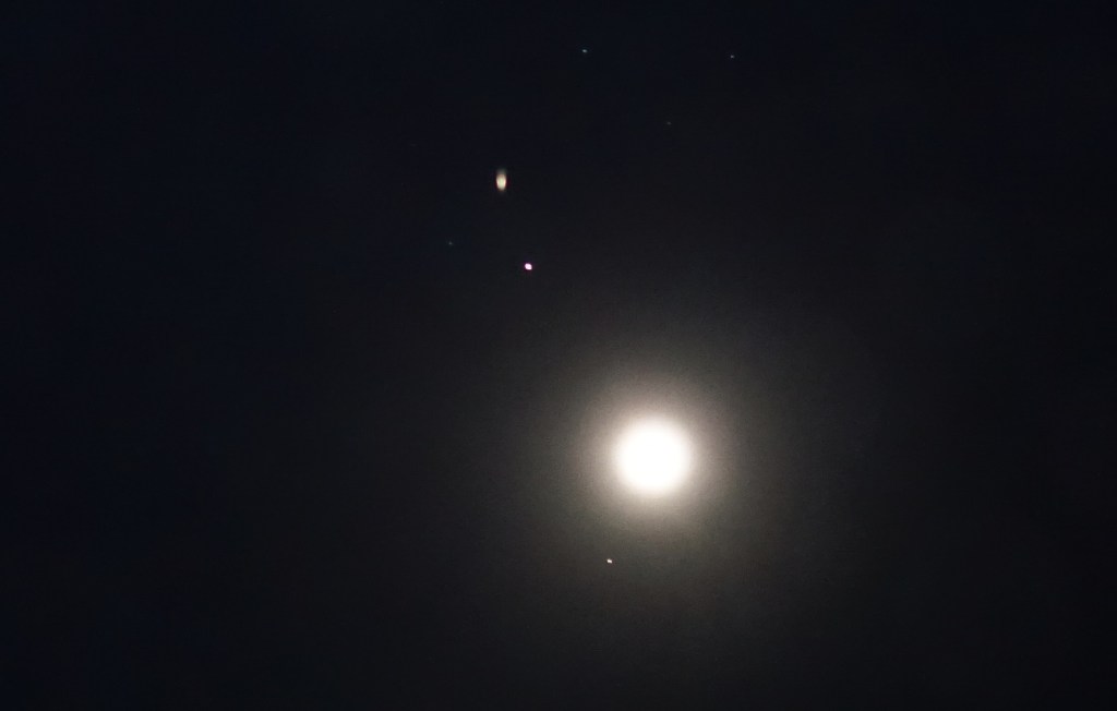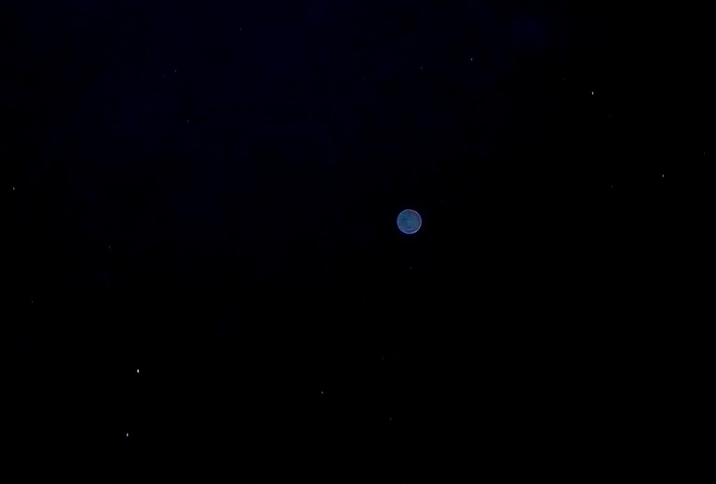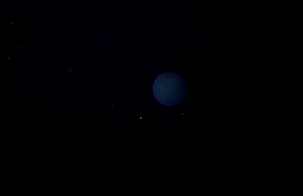 The Yvian ship with Haram’ura on board revealed its light, in the same soft mid-blue tones, as it moved slowly above Canopus, twinkling faintly. Here, I was asked to use the zoom on the camera, so their ship would be visible in its shape and colour.