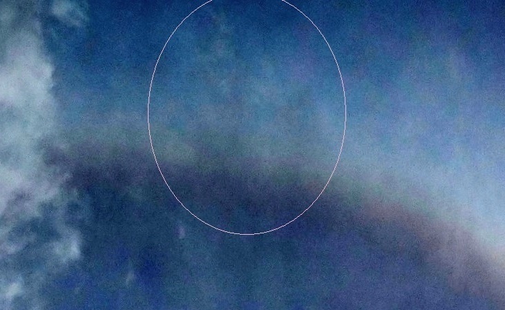 Returning to February 28th when Haram’ura flowed through with the blue lightship from Yve, multiple streams of light-codes were anchoring that night, and we’ll also focus here with the Lei’hua (support ship from the Meri’Ashar, which we, as Rowena&Arnap in 5D soul expression, have been bringing into the Earth’s field the last two years). On February 28th, the Lei’hua stationed overhead and sent down a light-beam, which came out with amazing clarity in the photo below, as the ray literally grounded into the Earth, flowing a sequence of energies from the ship. The clearest energetic imprint can be seen as a ‘bubble’ floating down the light-beam. With the brightness reduced, a circle of figures is visible within the bubble, at a round-table meeting.