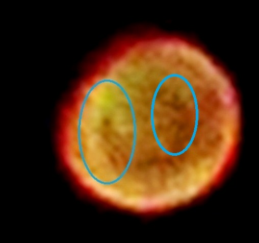 In the enlargement below, you can see how their merged yellow-golden light-form came through, beautifully warm and clear, with shining white light radiating through the yellow-gold. They’re also holding out a staff of blue light, the guiding beam of the Blue Ray that aligns all energies with Divine Love&Will…and as the stargates within Sirius and Canopus opened in unison with that directed Ray, the whole triangle activated, sending a wave of light frequencies, concentrating and pooling through the centre (creating a fourth point, an open 4D zero-point, for the higher light vibrations and codings to flow through, into the 4D spacetime, etheric, astral, and 3D-projected ‘solid physical’ appearing frequency bands in, on and around the Earth).