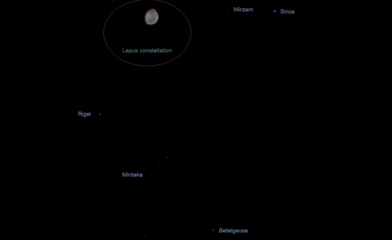 Pearly orb from Lepus constellation floats above Orion, on January 22nd 2021.