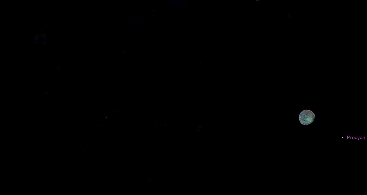 Lightship from Lepus flies close to Orion’s Belt, then toward Procyon, on January 18th 2021.