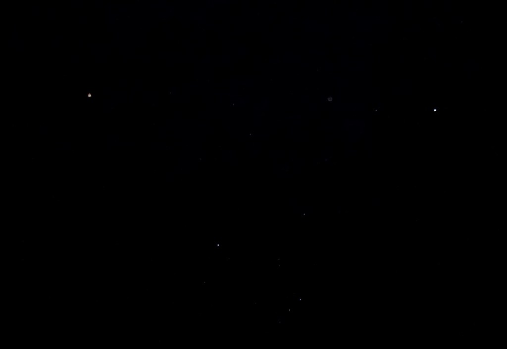 The sky was a bit hazy and the stars dim, but another ship became subtly visible left of the V of the Taurus ‘bull/cow horns’ (formed by the Hyadean star cluster, with Aldebaran shining at the right).