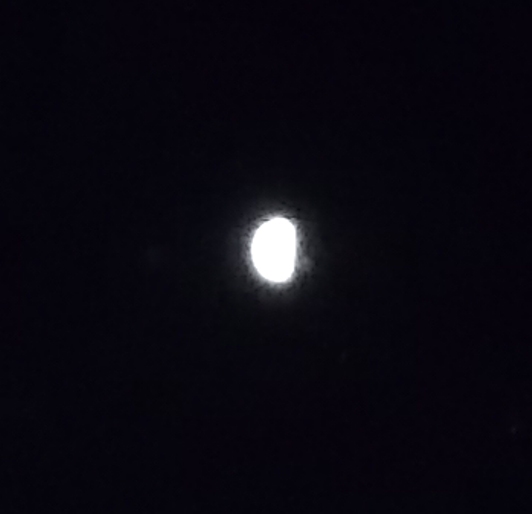 Venusian rose-gold lightship flashes white light, upper left of the moon, July 1, 2018.