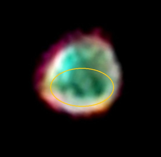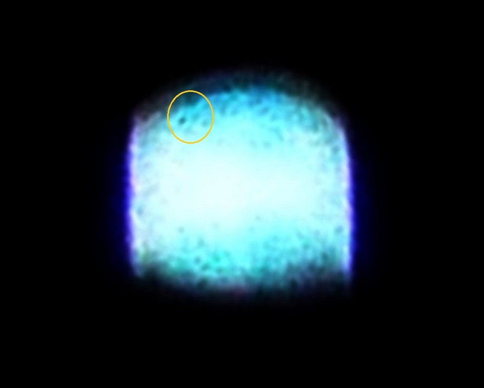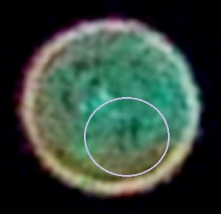 This orb was followed by a brilliant aqua-white flash, still above Jupiter and Saturn, full of beings whose faces are just visible around the rim…with Arnap (Ashura, my TwinFlame, in his 5D form) among them, to guide my connection with the Tritonites (see his face circled below, with lots an antennae waving around him, and joyful smiles)!