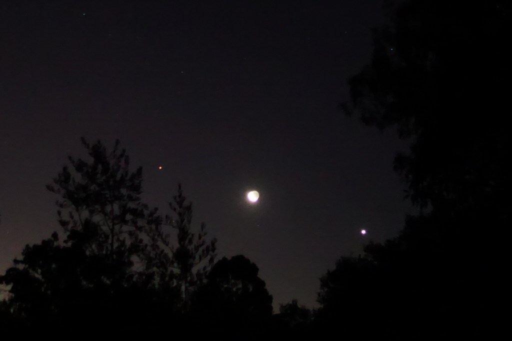 Mars above Moon, with ships either side of a star upper right of the Moon, forming an arc to Mars, September 19th 2018.