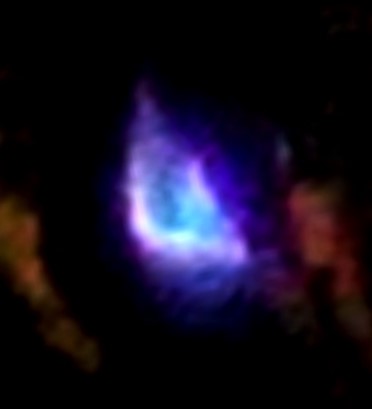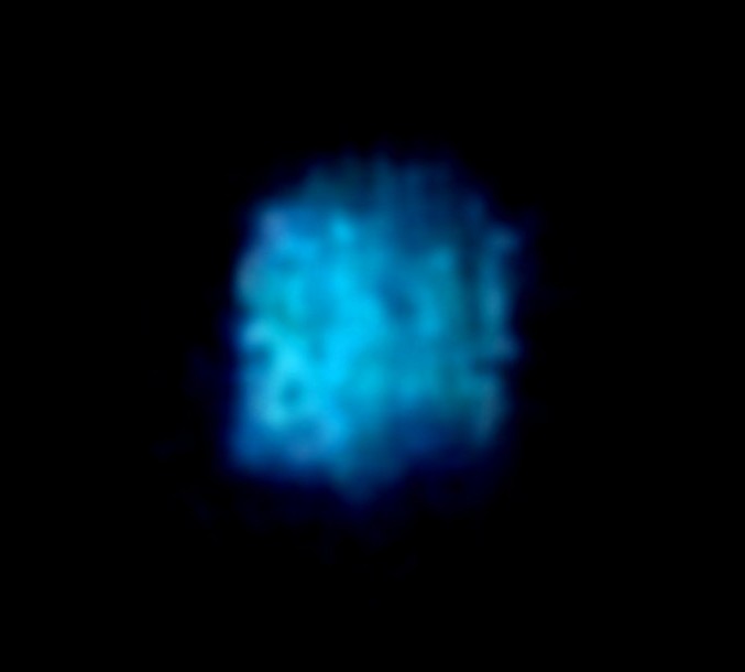 In the enlargement, two distinct soul group vibrations can be seen coming through this orb, melded together in unity, with a face in purple-blue light on the left, showing leonine-humanoid features, and the face on the right in royal blue and light blue, with cow horns. 🙂