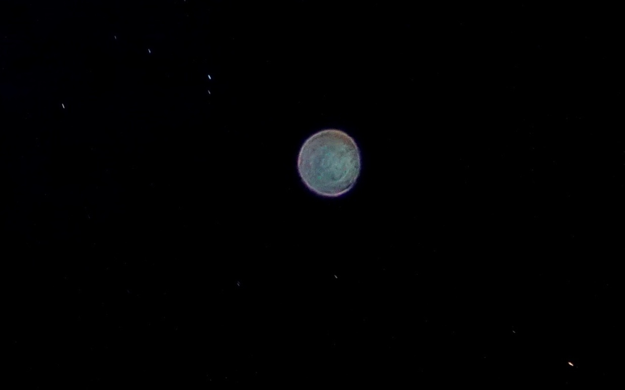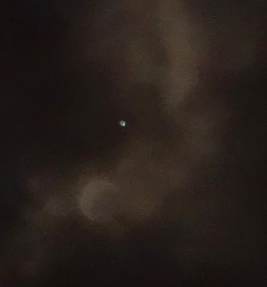 As our connection firmed, Donny brought a smaller pod-ship out from their mothership, with a wonderful clear appearance on September 17th, again beginning with a pearly blue orb near Jupiter & Saturn, with subtle rainbow colours more visible in it now….followed by a flash from Donny’s pod-ship at closer range (lower left of the second photo).