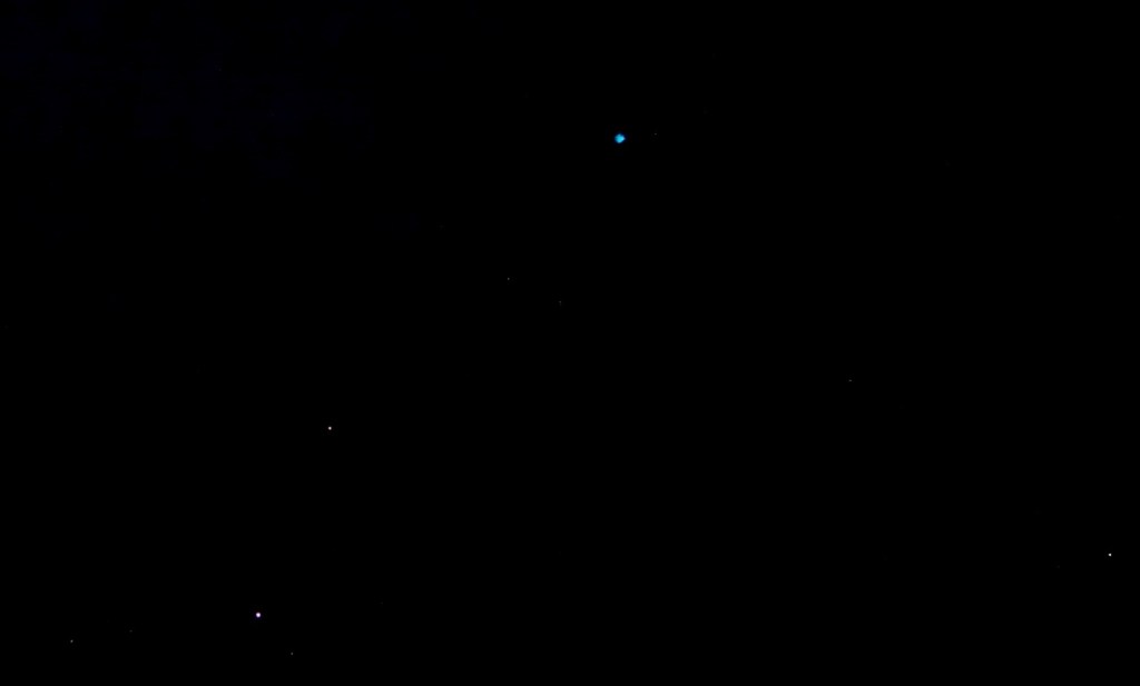 From the next night, on September 12th, Donny and his soul family began coming through much more clearly, beginning with a pearly, blueish orb that came into alignment above Jupiter and Saturn, then brightened as it flew above them.