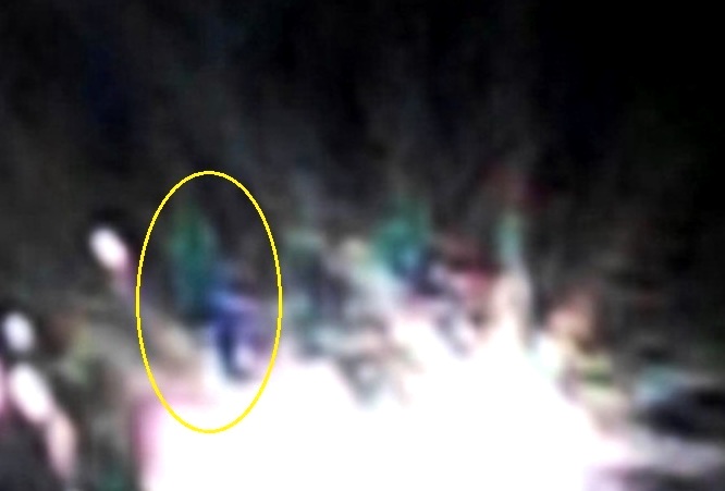 While walking up the hill to the centre of the light-grid, I was called to take a photo of the sun’s rays filtering between the branches of a tree while tuning with our Neptunian friends on board the Amrita, and within the sun’s rays in this photo there are very clear figures in the Neptune Command colours of sea-green, teal blue and deep blue. I’ve circled the foreground figure at the left below (there are several more, to his right), clearly seated at a console with a screen in front of him, dressed in dark blue pants and deep green long sleeved top, with wavy shoulder length hair.