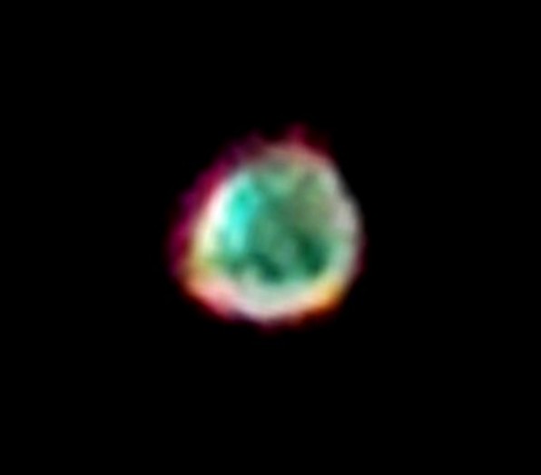 Green and reddish coloured orb appears above Mars, April 22nd 2020.