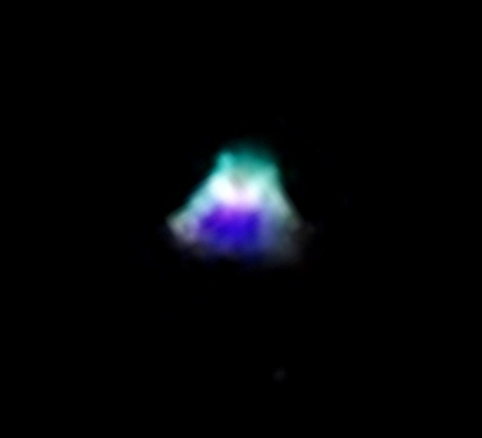 An iridescent ‘ultraviolet angel’ appears in a light emanation on December 28th 2023.