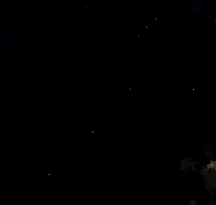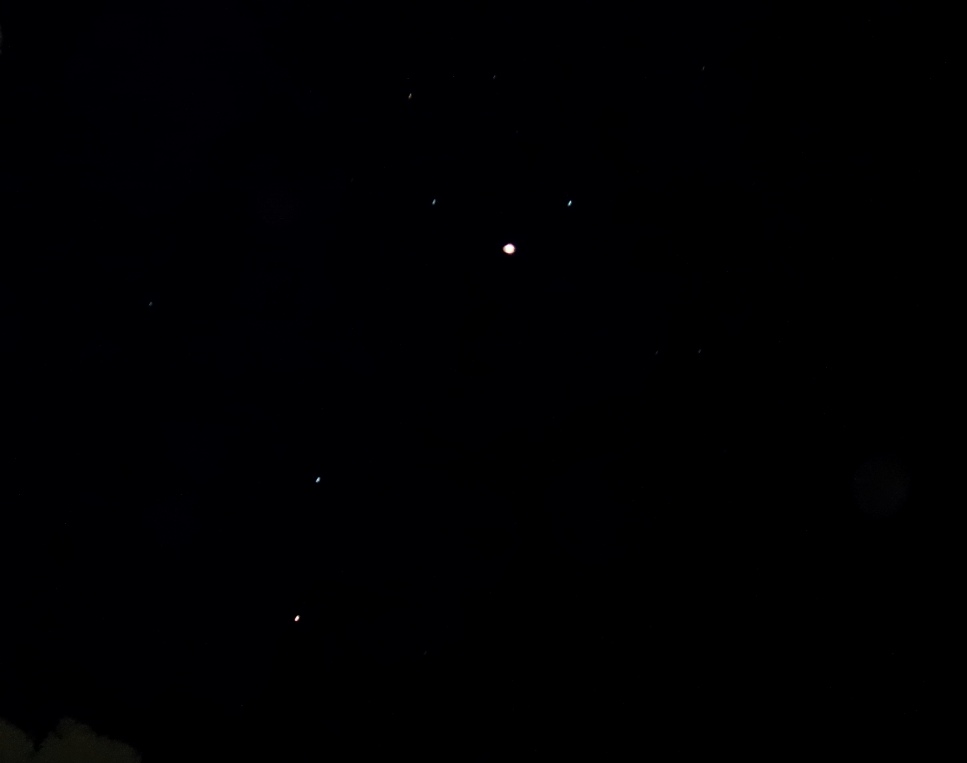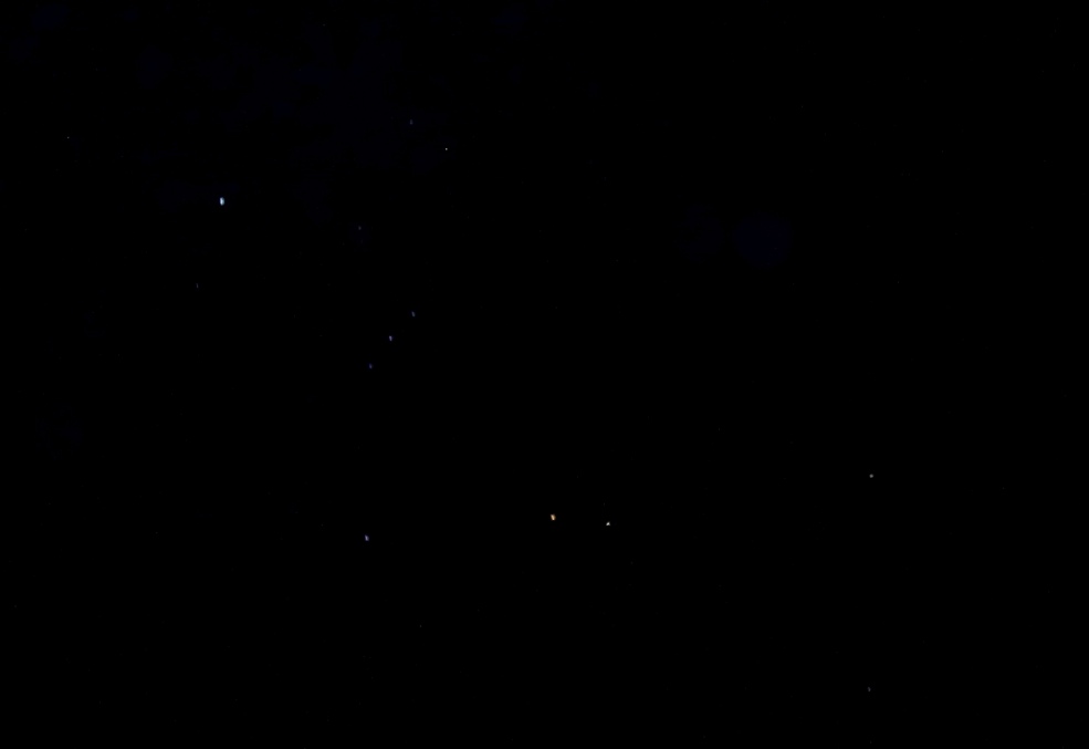 We’ll begin with photos of multiple ships that appeared in the sequence below on January 14th 2019, in straight alignments to particular stars within the constelllation Orion, shifting all aorund the constellation, firstly in straight alignments to the stars Saiph and Bellatrix, then just above Rigel, with an orb below, then two ships straight-lining lower right of Betelgeuse, symbolizing higher adjustments of energies in and around that constellation, and the alignment of those energies in relation to the Solar System and Earth’s energy field.