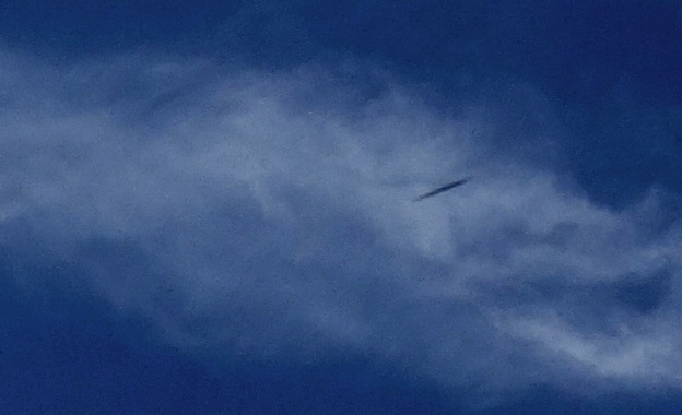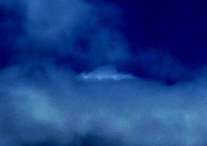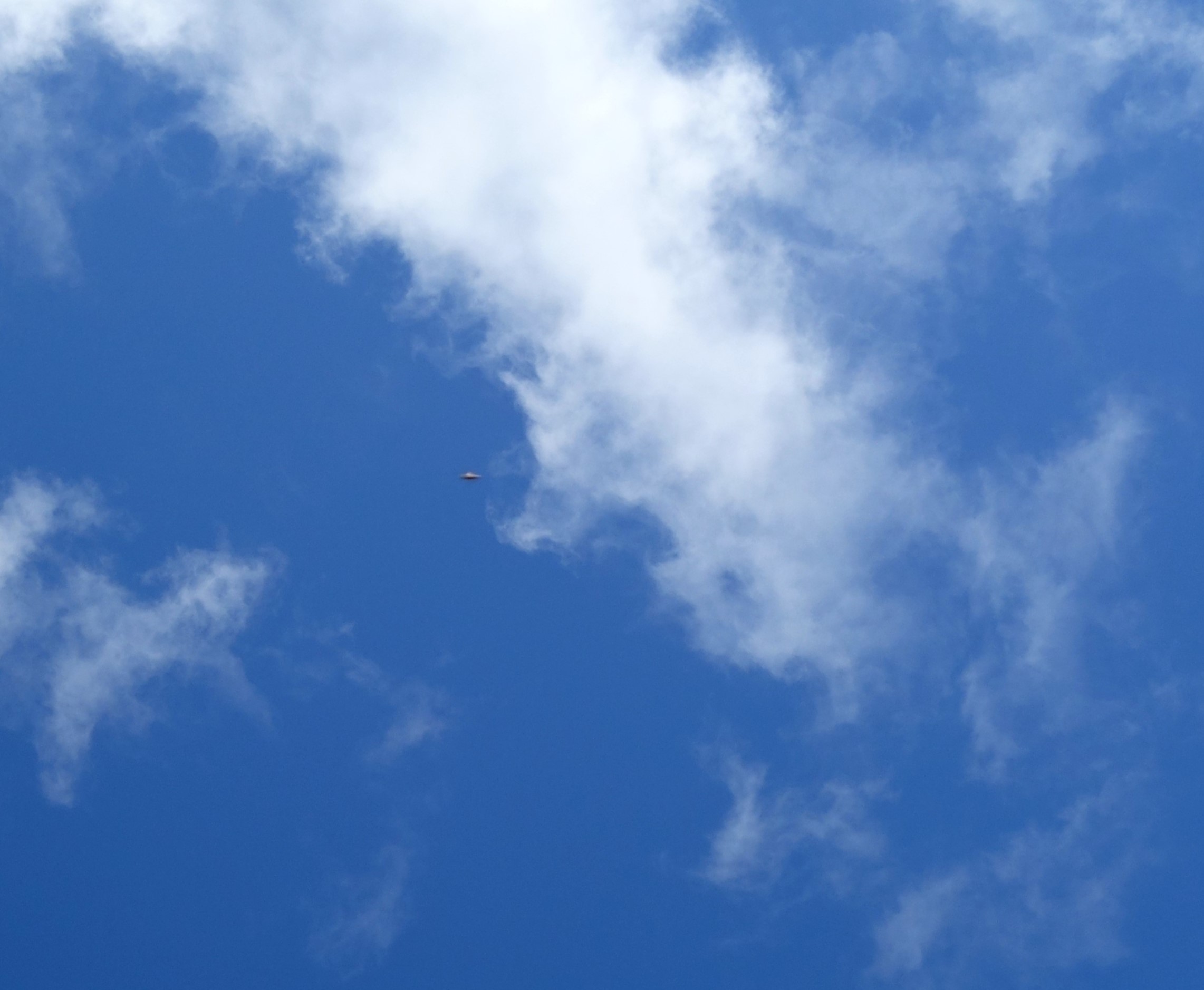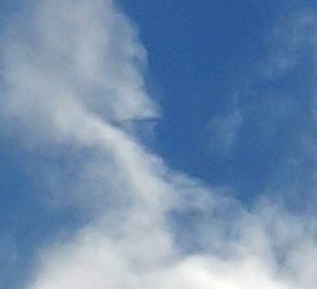 On May 19th, I took a few photos while on a train, passing across a major ley line/Earth energy flow line during an Ashtar Command focus into that alignment, with a ship named the Shem’Arua above the train and smaller ships flanking on each side. The photo below shows one of the flanking ships, as it popped in and out of view, coasting along beneath a cloud.
