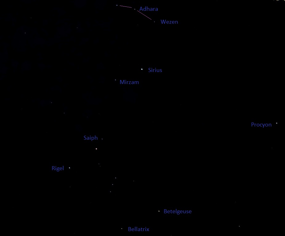The ships then shifted into a closer formation to these two stars, with the ship on the left very close to Canopus, on a horizontal alignment to the right-hand ship, which positioned itself midway between Sirius and Mirzam (second brightest star in Canis Major after Sirius).