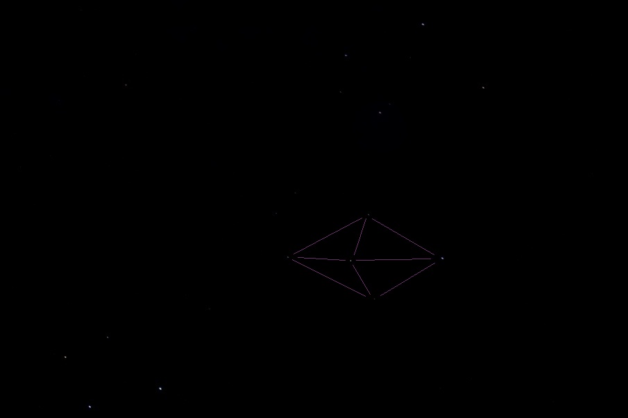 On February 25th, still in the same area, a pair of ships stationed in the middle of the Diamond Cross asterism, along a straight axis between the vertices of the diamond (lower left, with Elysian Cross upper right).