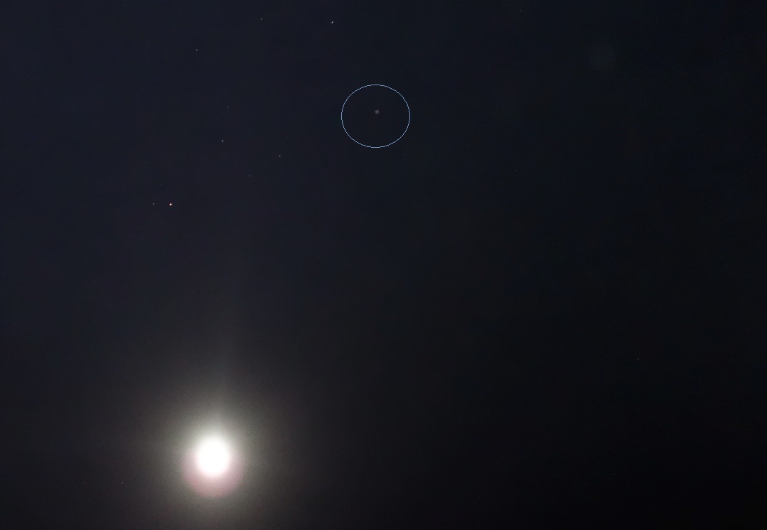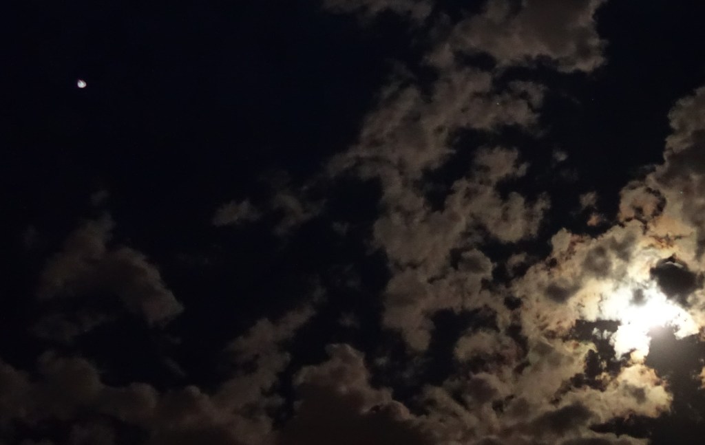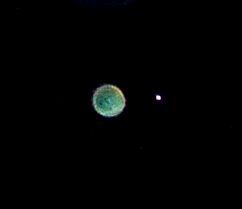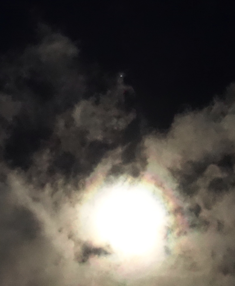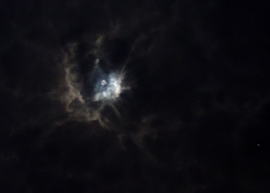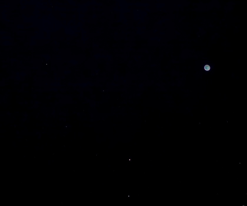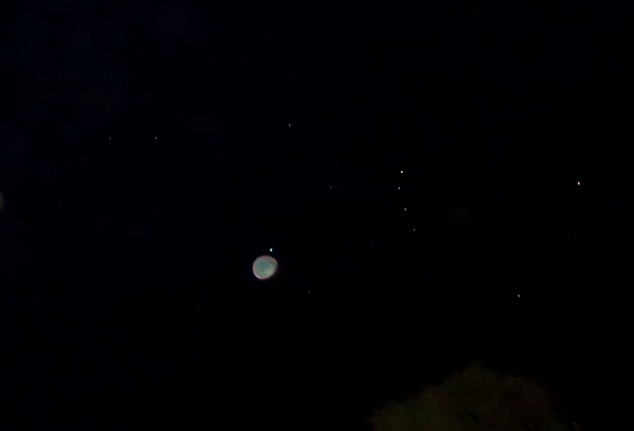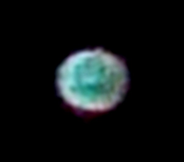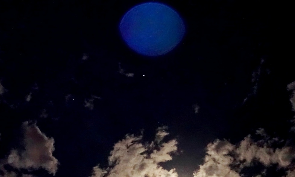On the night of September 7th, with the Moon appearing perfectly equidistant between Jupiter and Saturn (at left and right of the Moon respectively in the photo below), a mothership I’ve never photographed before made a very beautiful orb-like appearance within the Moon’s halo. This ship’s name is given as the Miranda, Twin Flame mothership to the Neptune (which is commanded by Ashira Sheran, and the Miranda by Ashira’s Twin Flame, with the ship named in alignment to her 5-6D soul expression Miranda), and an impression of its soft, flowing green-blue interior colours and light is projected in this greeting to all. 🙂