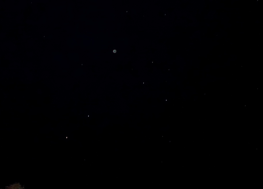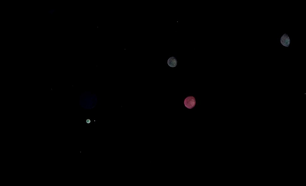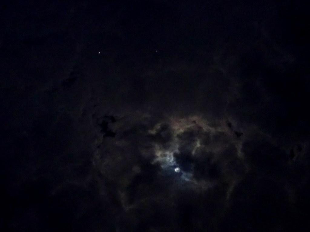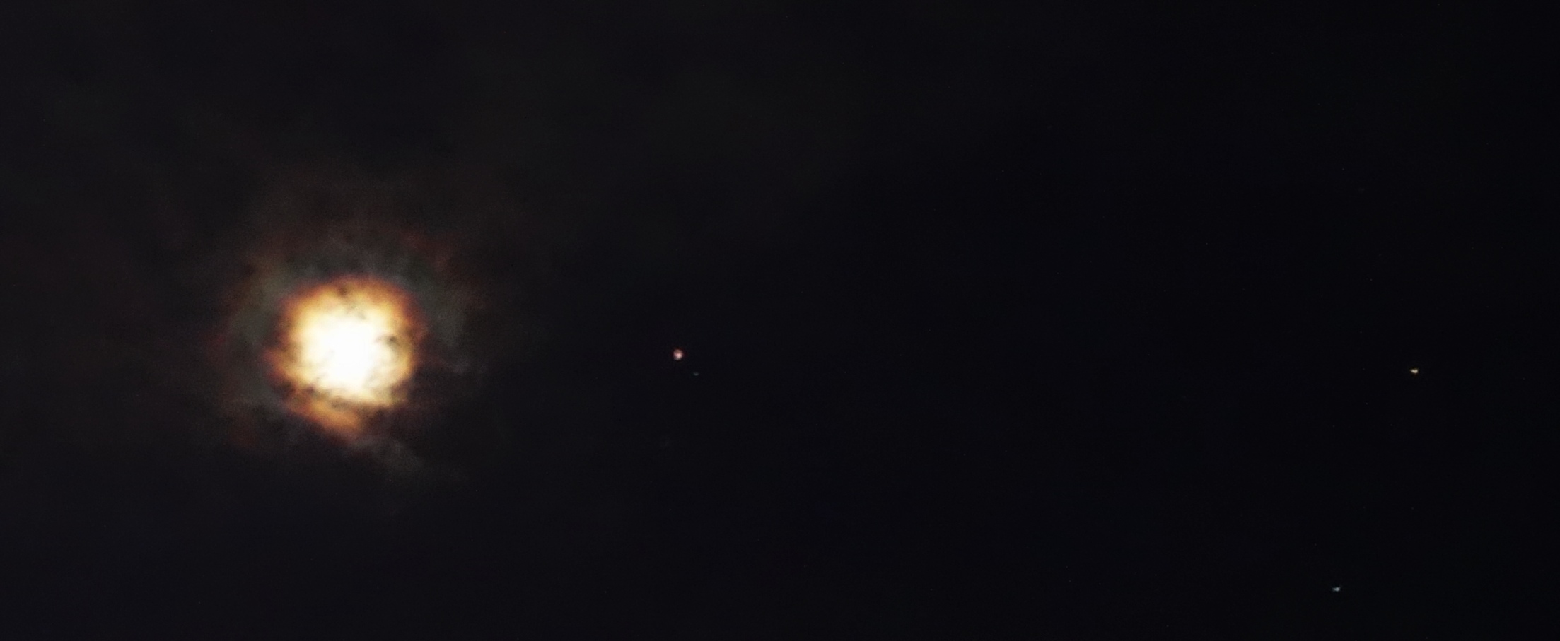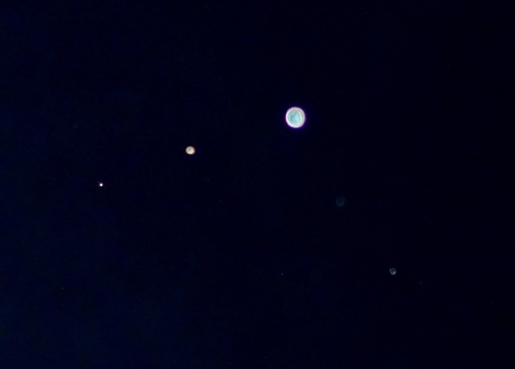 The following night, August 9th, there was a lot of activity around the moon, with several beautiful multi-coloured lightships connected with Jupiter appearing in the photo below.