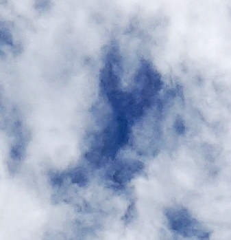 Coming into April, star family gave many signals of their presence, firstly in the morning of April 3rd 2019, beginning with the clear outline of part of a double diamond-shaped ship’s rim in a cloud (small cloud at right; this type of ship comes from the Carian/bird-being soul groups).