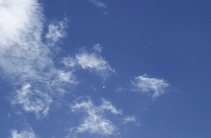 A dear friend in the Ashtar Command fleet named Turo peeped his small pod-ship from behind a cloud overhead on April 17th.