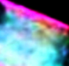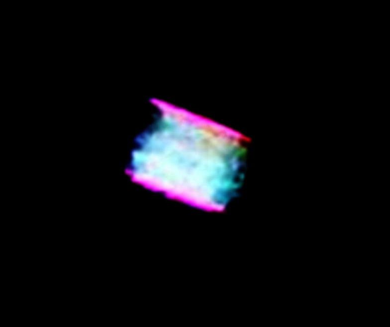 This was followed by a ship that flashed a pink-white colour, at the far left of the next two frames (with a stream or orbs flowing behind it into the frame in the second photo). In the enlargements below, the first one is showing an ‘interior’ view of a being standing on a luminous platform/ascending through a hatch, and the second photo (of the same ship) shows its deep bow-shaped exterior form, in beautiful, distinct colours.