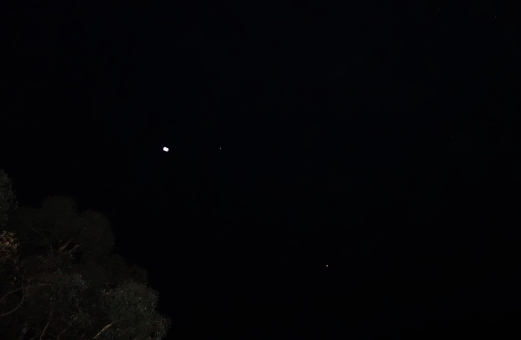 The two ships flashing golden light were visible for some time, in a beautiful signal of the success of the Gateway, and the lower of the two can be seen flashing in the video footage below, a little earlier in the evening (the steady light to the lower centre is the star Achernar, with Canopus just behind the trees at that time of night). This was the Shem’Arua (Light of the Lion), with my Twin Flame on board, in his currently merged 5-6-7D galactic form, Ash’Shari, in which he is embodied in the already-ascended New Earth vibrational plane. (You can hear my neighbours chatting and whistling, lol, in the second continuation video, oblivious to the ships flashing brilliant light overhead! Soon more people will be able to see them, as the 2020 deep light shift flows through this Earth field).