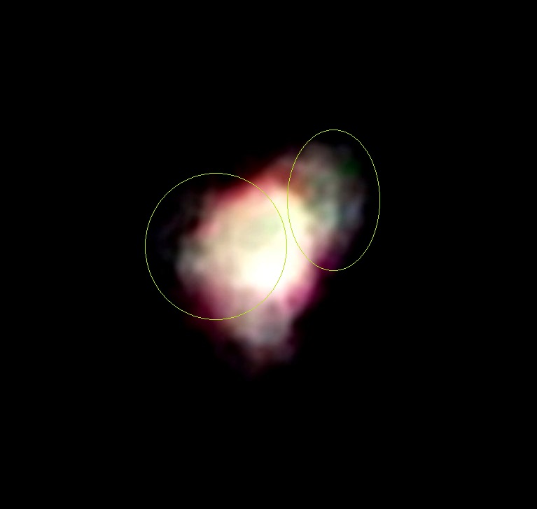 In higher dimensions, interdimensional portals exist within stars, some planets and moons. The photo below shows a green lightship (the Neptune) guiding a large reddish colorued orb toward the Lunar Portal (open at that moment within higher dimensions of our Moon). The two stars at the right are Castor and Pollux, the Twins of the Gemini constellation, and the reddish orb represents energies from the Jellyfish Nebula, within Gemini, in the context of a transformation occurring in that nebula…with the orb becoming a lighter pink-white as it neared the Lunar Portal, on April 11th.