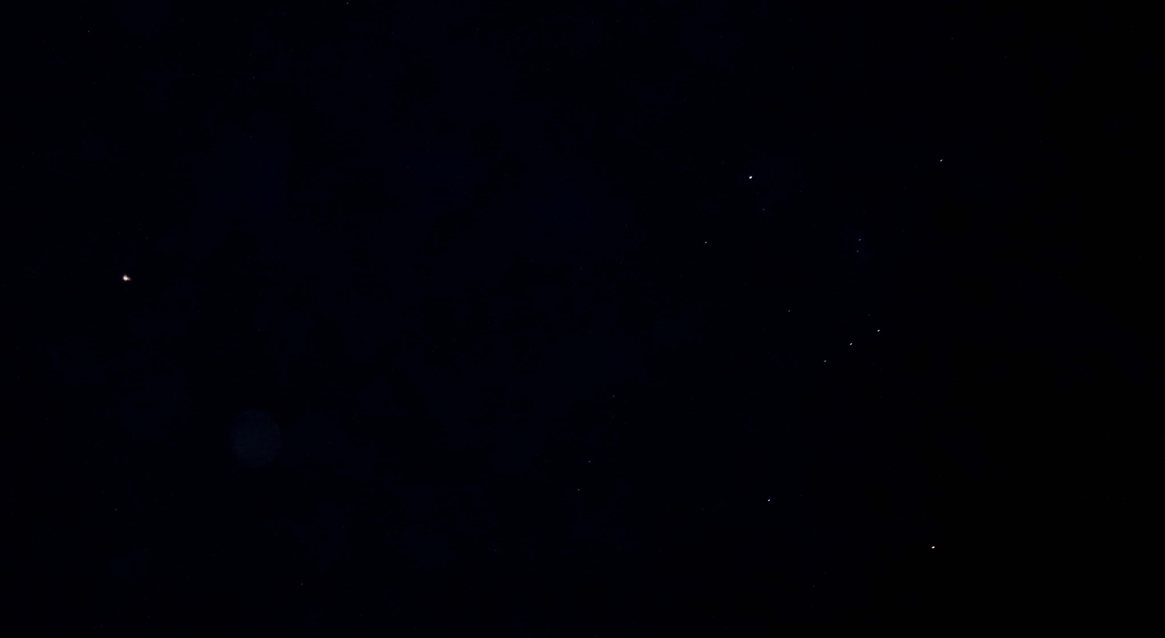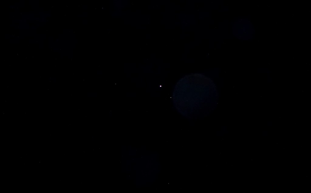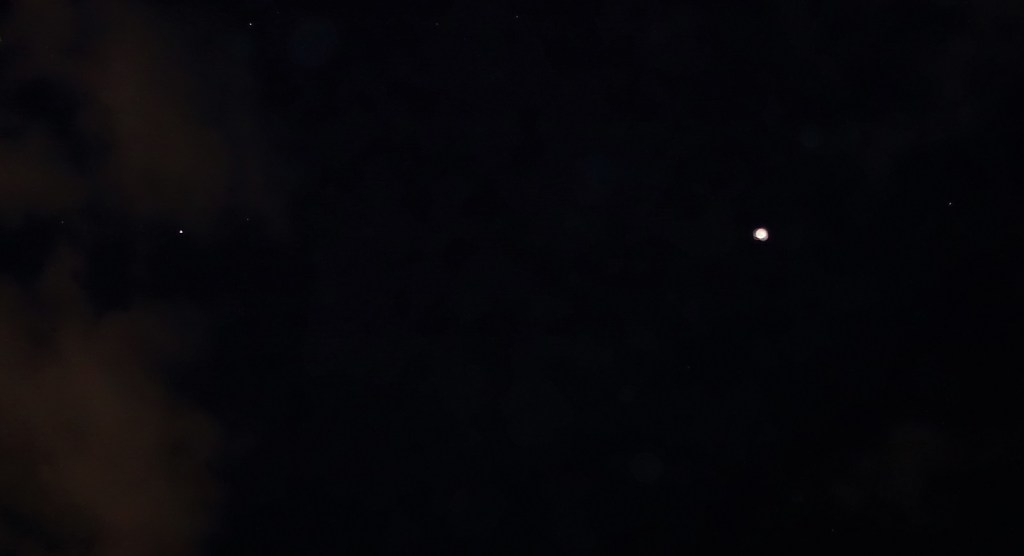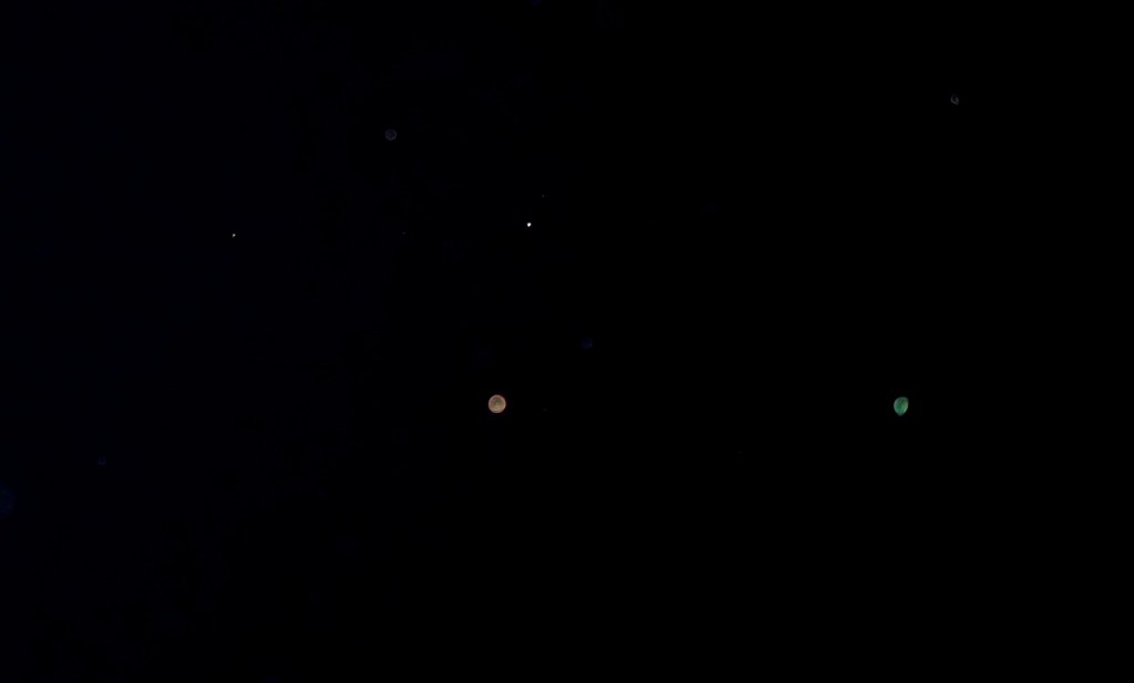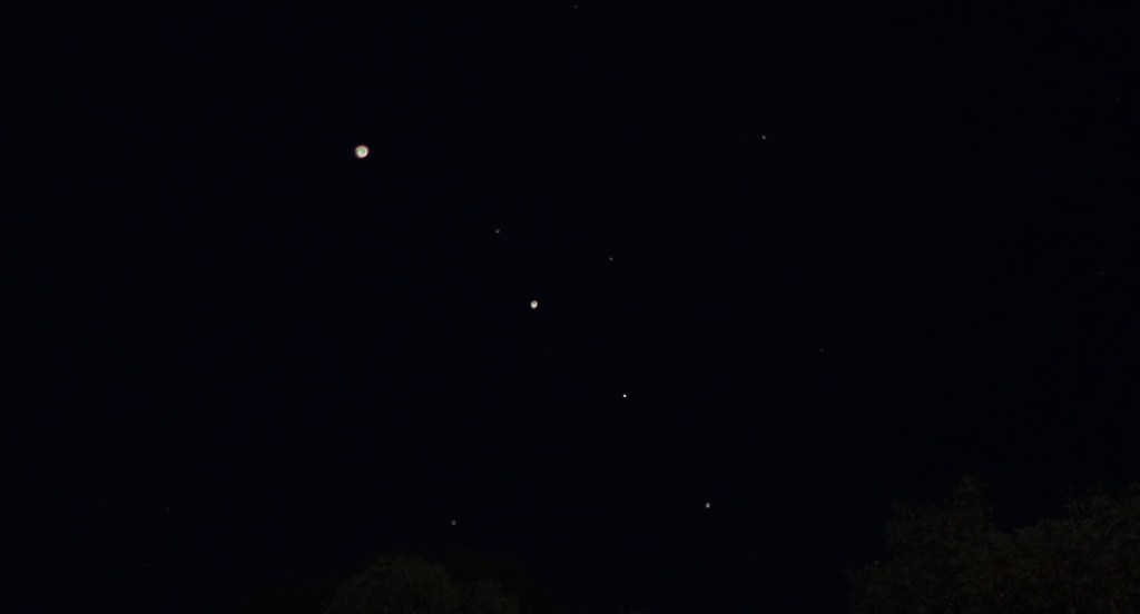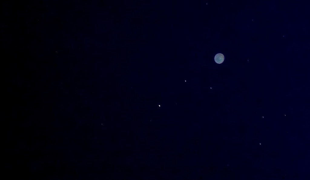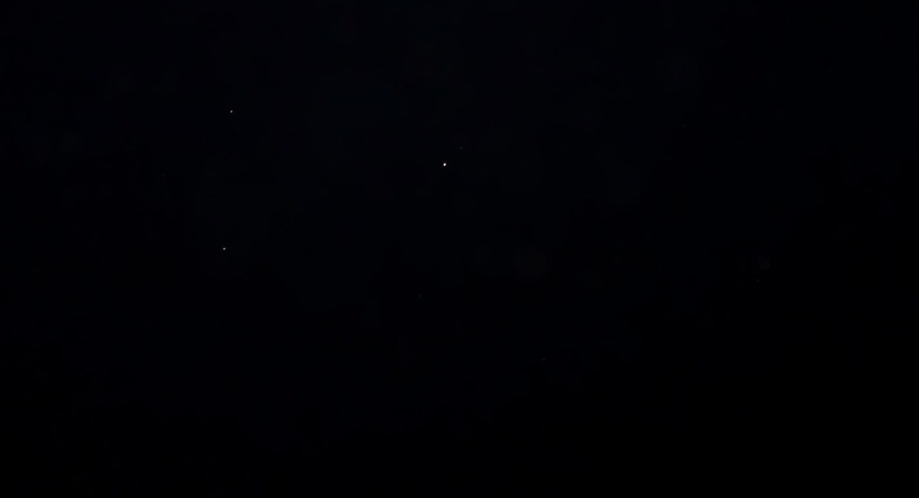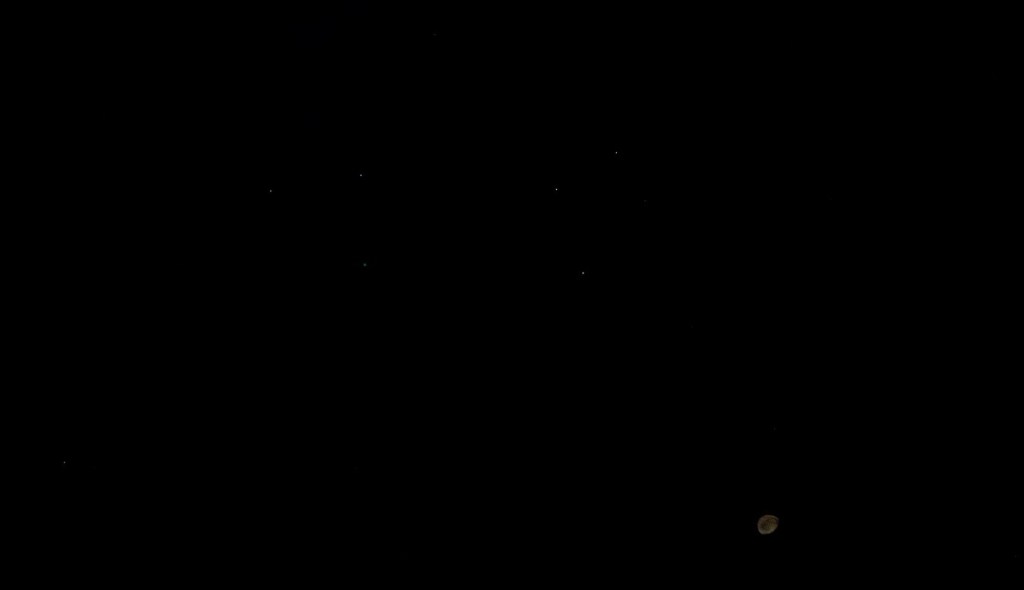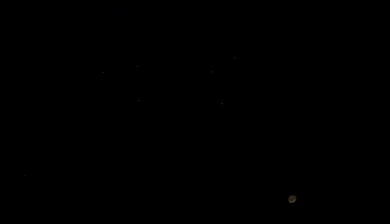 Then all three appearing for a moment, still in straight alignment, below the Moon and Jupiter, in perfectly graduated sizes (showing the direction of the movement of the energies they were working with at that moment).