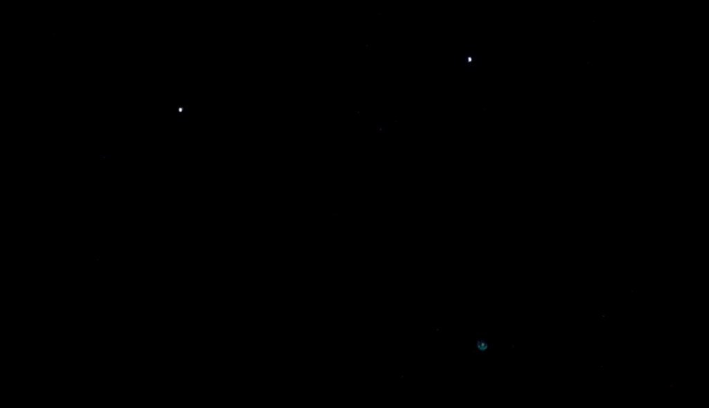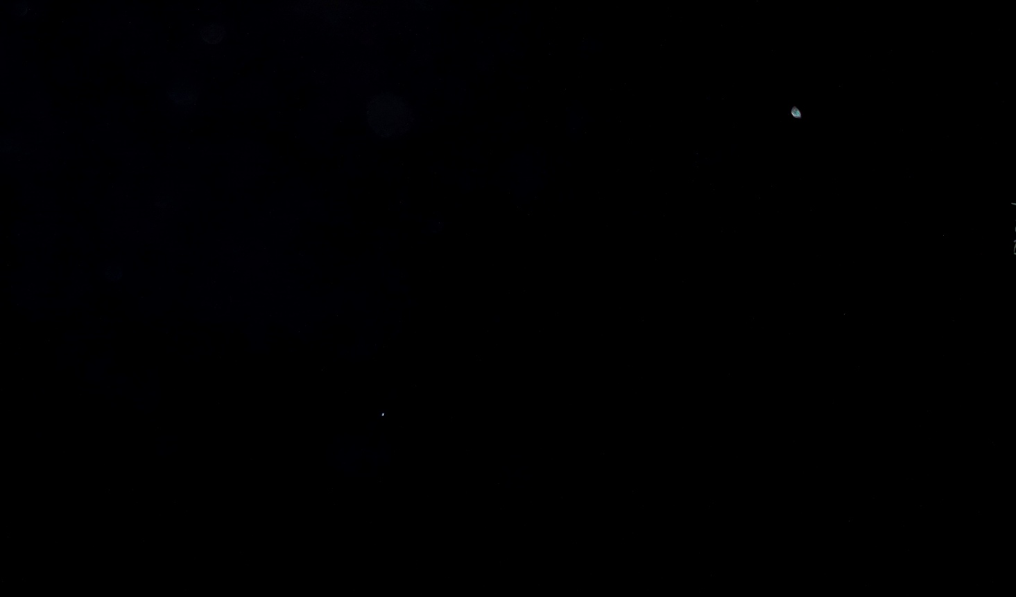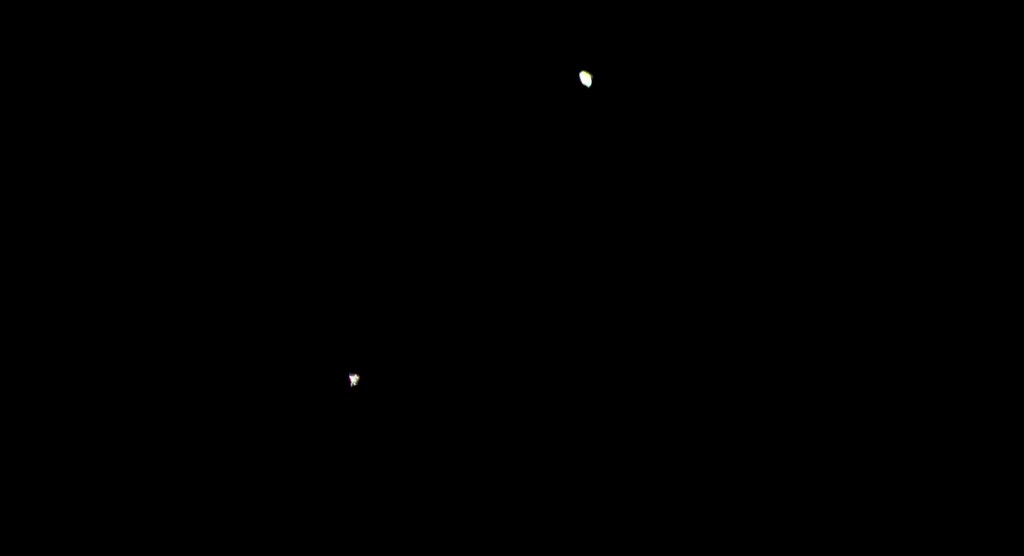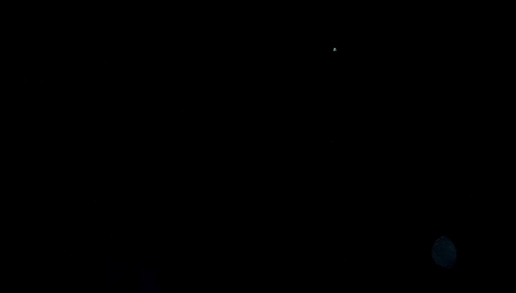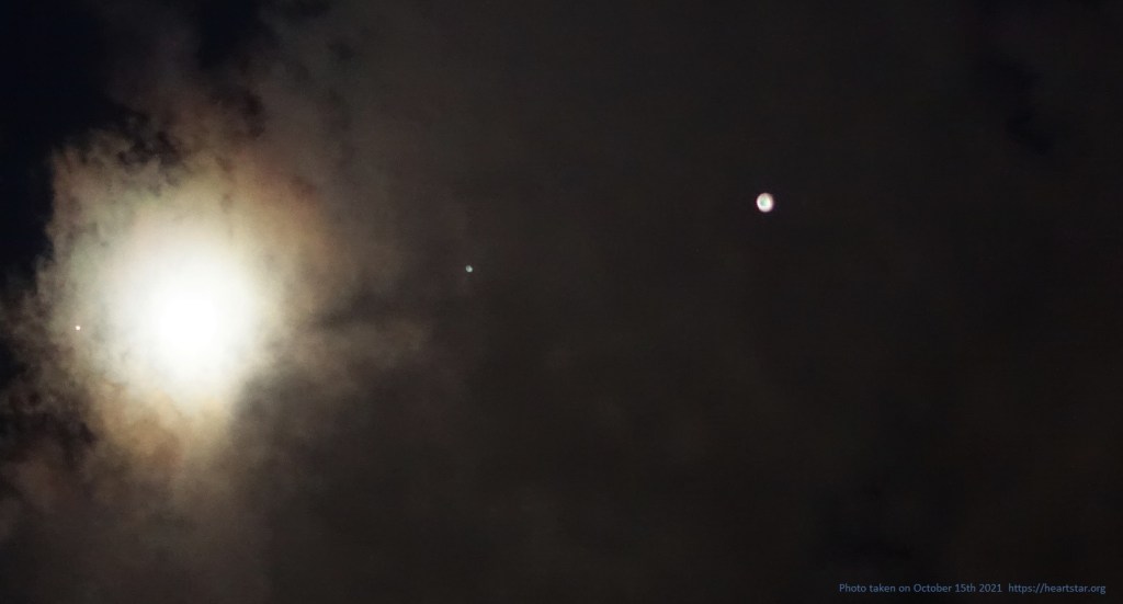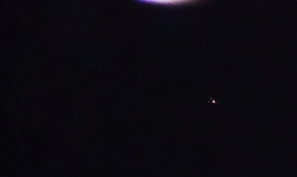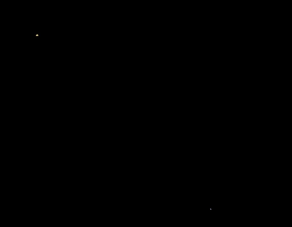 Then all three appearing for a moment, still in straight alignment, below the Moon and Jupiter, in perfectly graduated sizes (showing the direction of the movement of the energies they were working with at that moment).