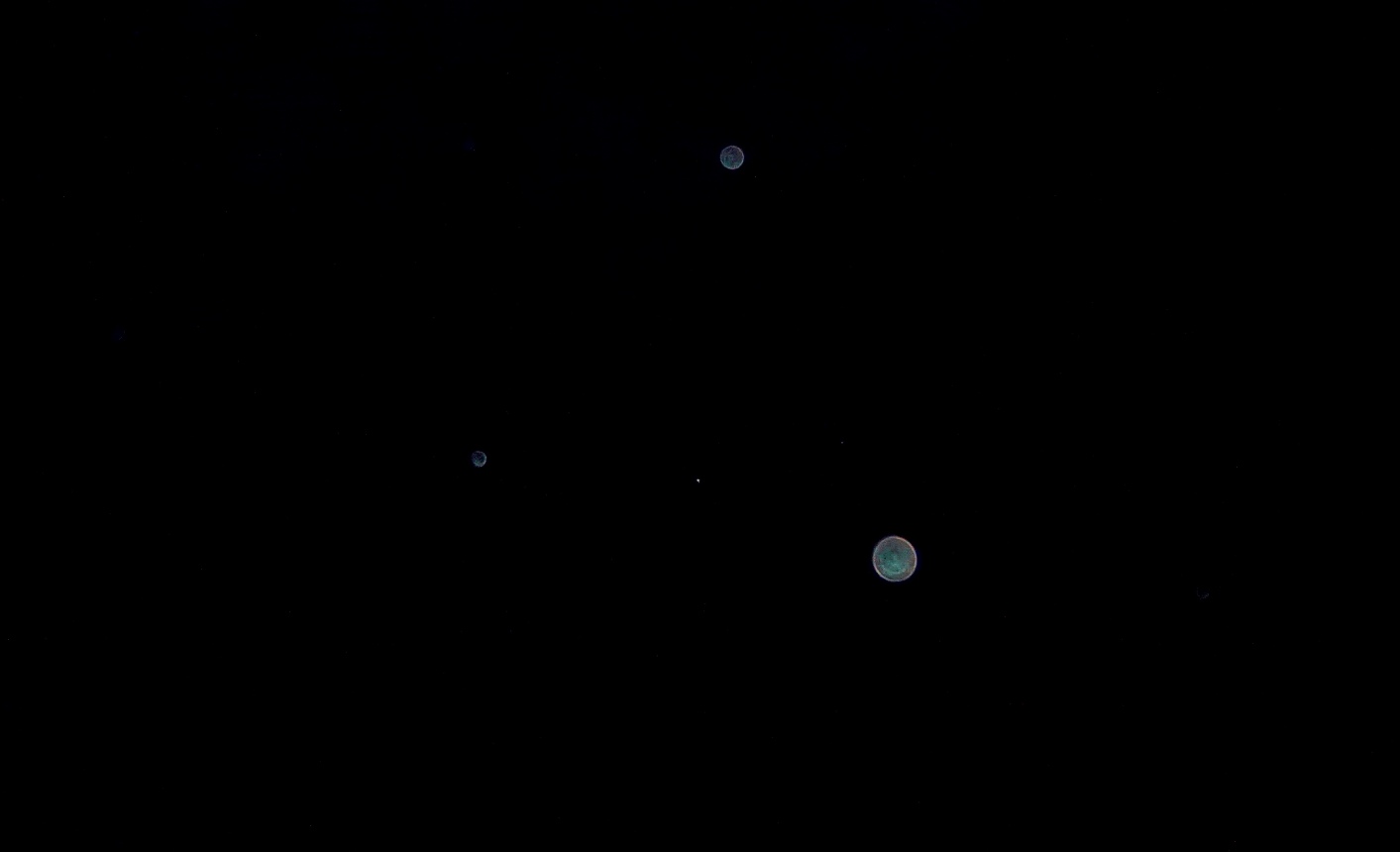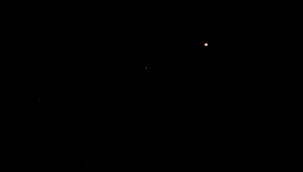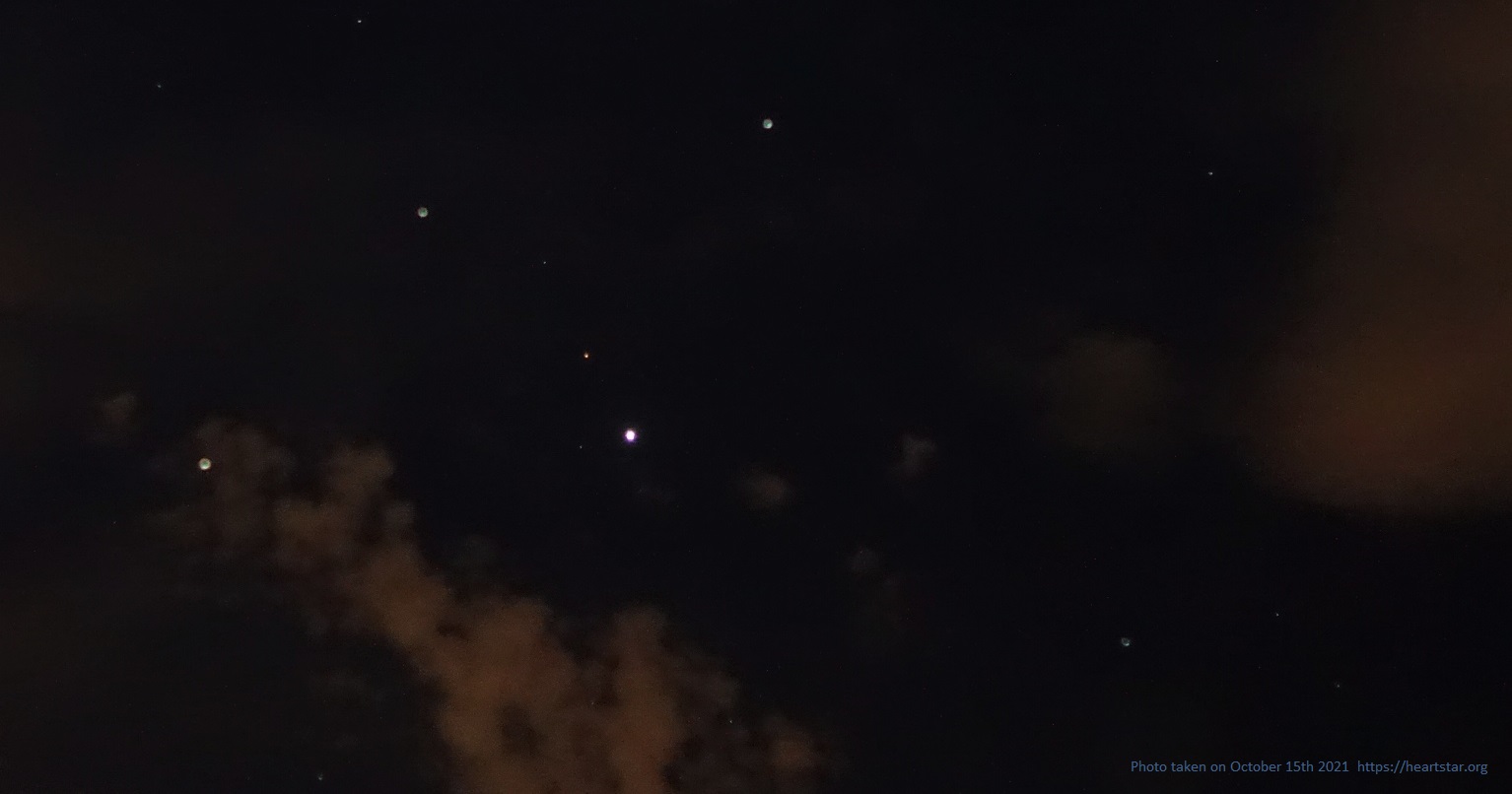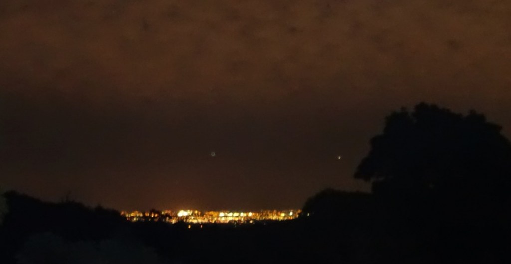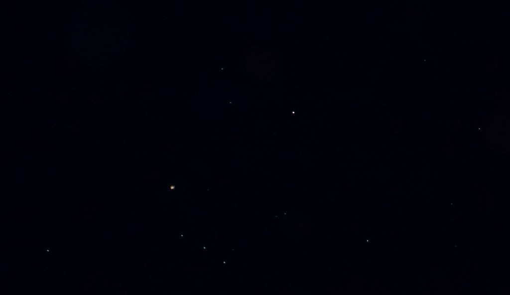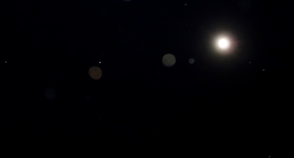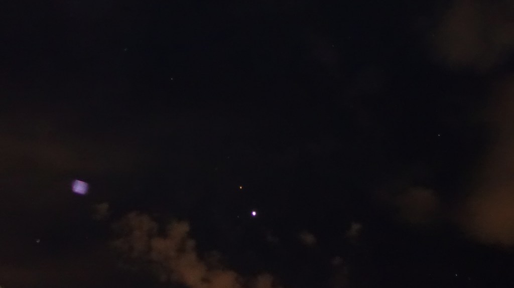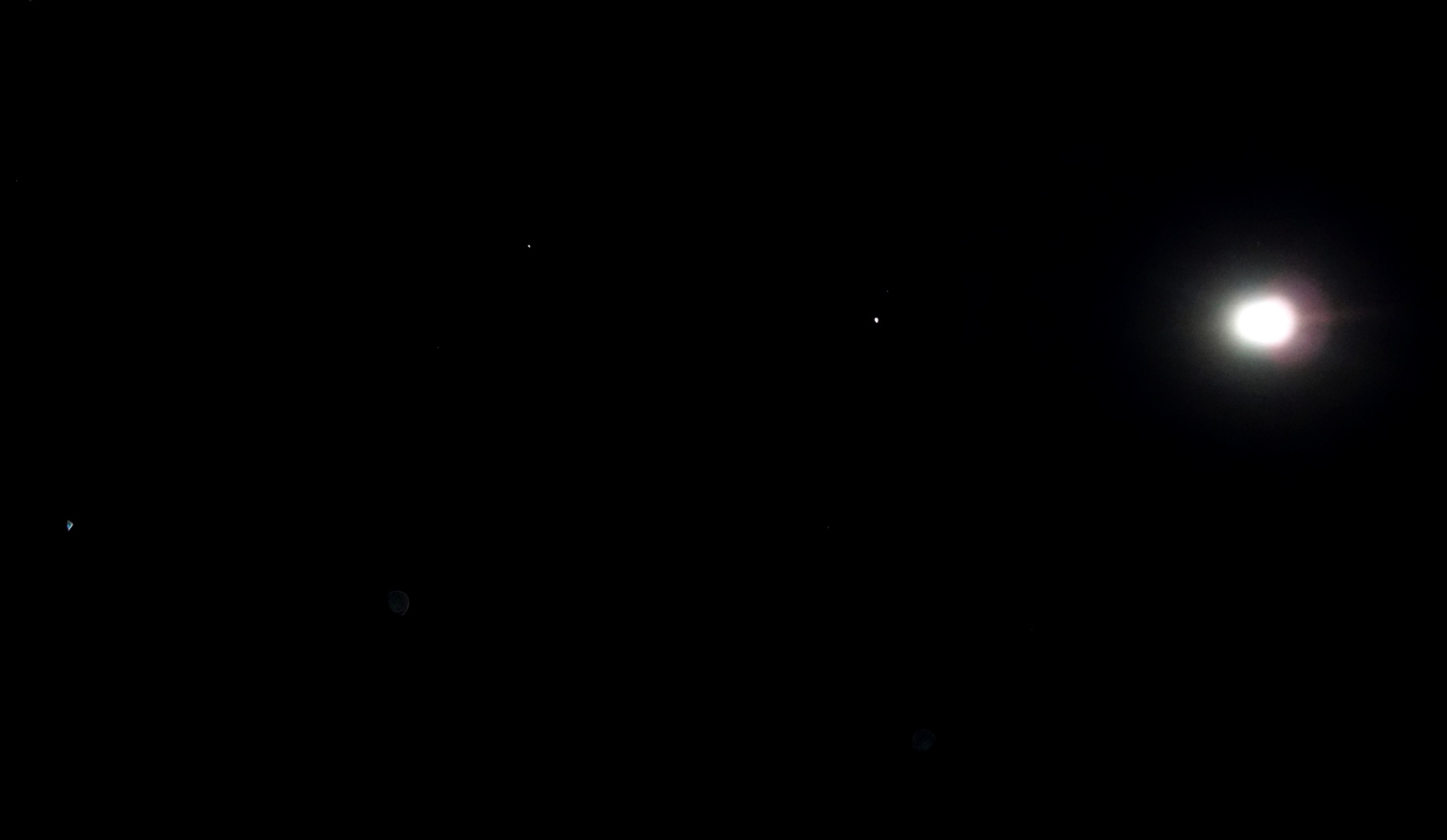 Then all three appearing for a moment, still in straight alignment, below the Moon and Jupiter, in perfectly graduated sizes (showing the direction of the movement of the energies they were working with at that moment).