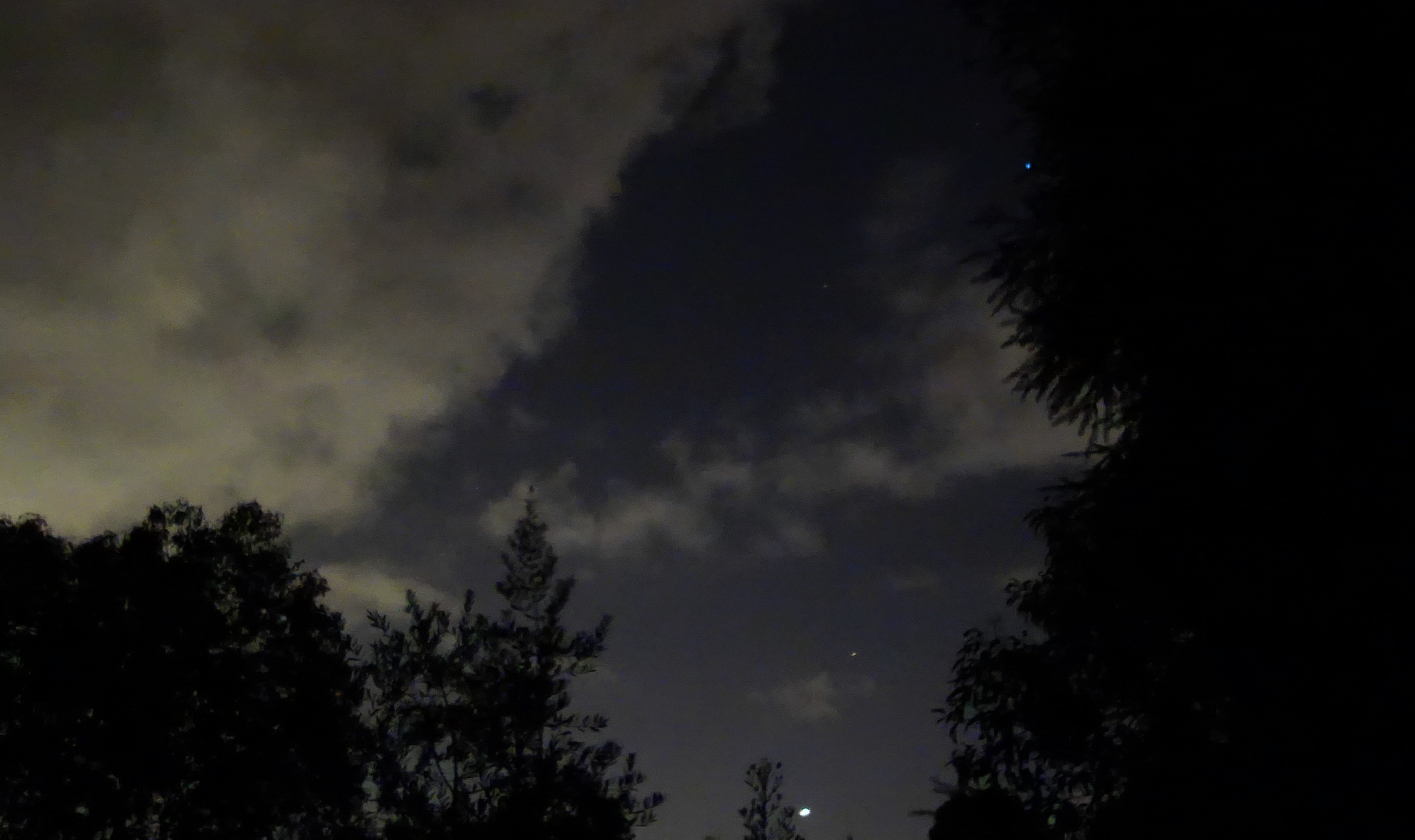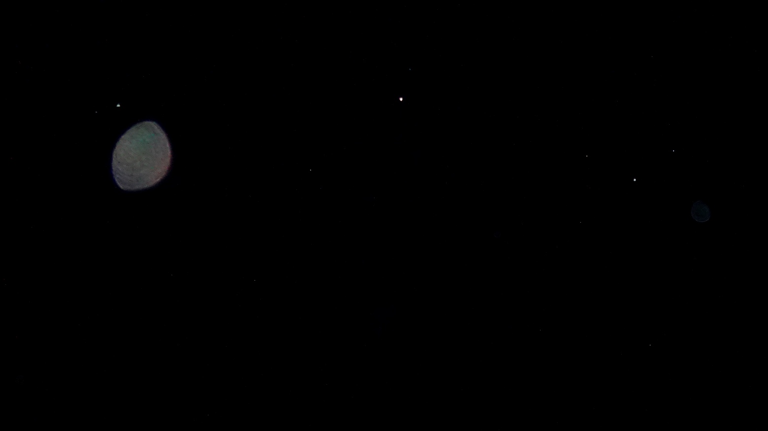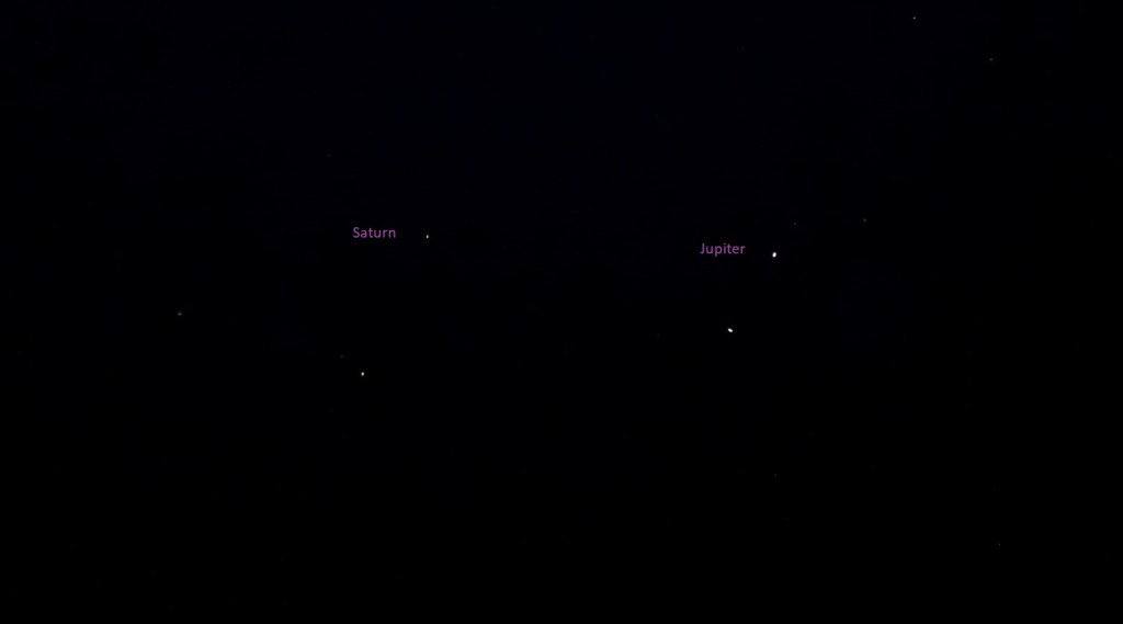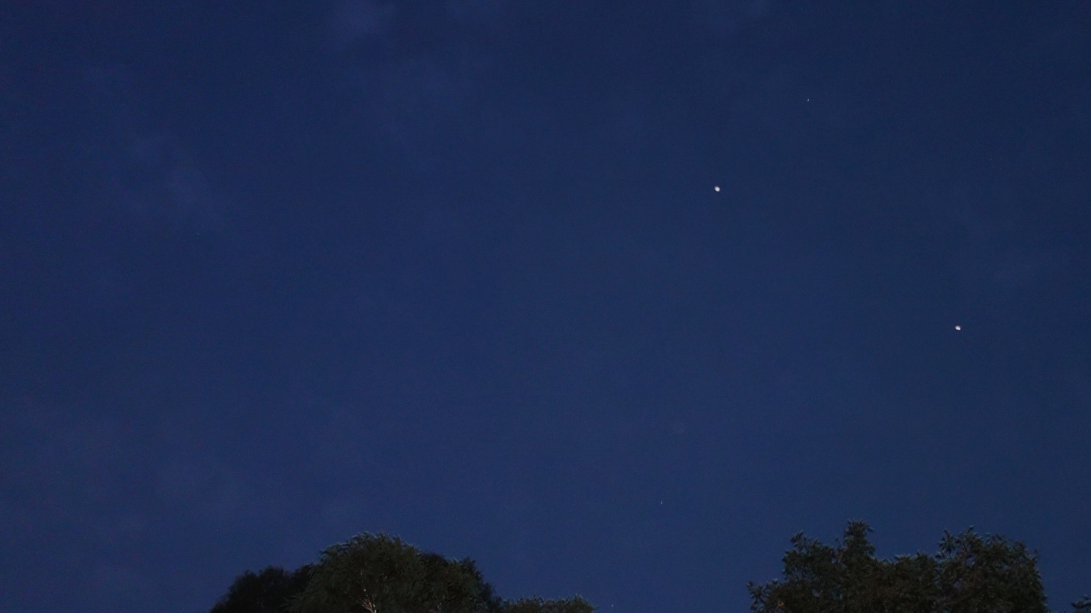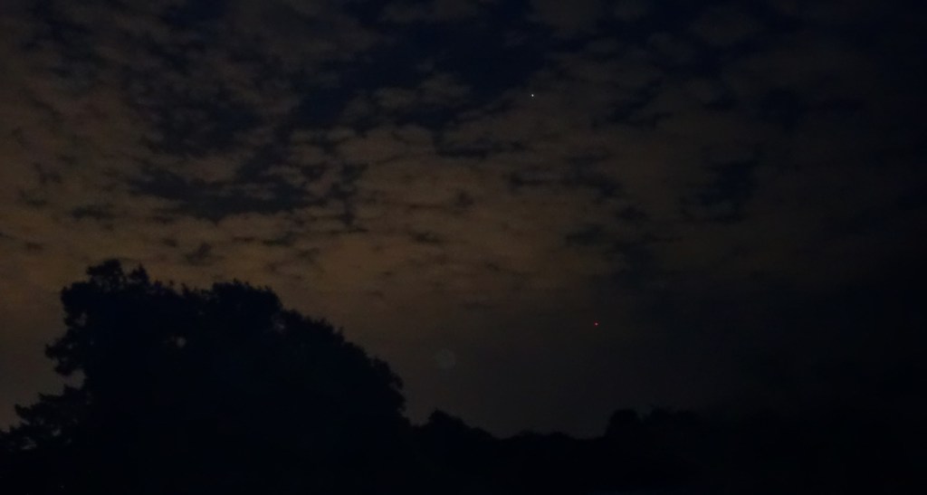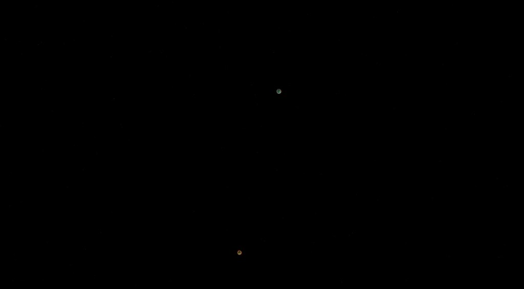 Then all three appearing for a moment, still in straight alignment, below the Moon and Jupiter, in perfectly graduated sizes (showing the direction of the movement of the energies they were working with at that moment).