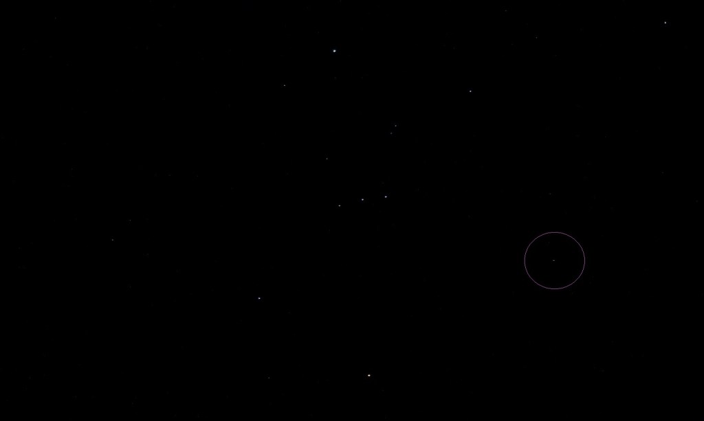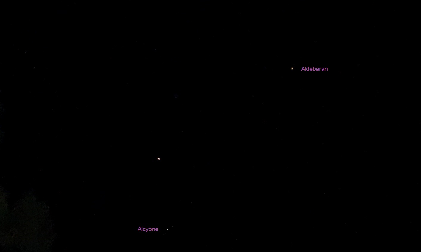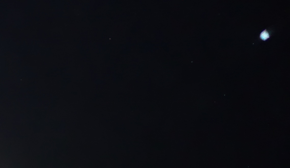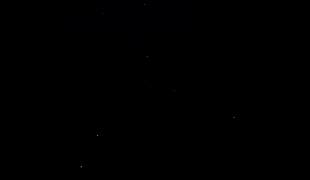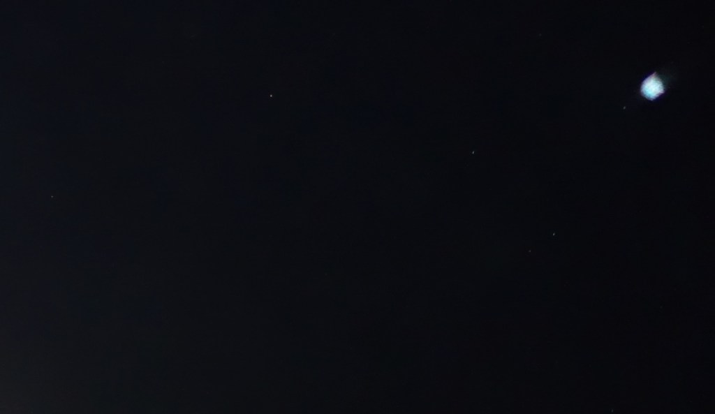 Lastly that night, a ship showed its presence near Aldebaran in the Taurus constellation. While Sirius turned rose-pink, Aldebaran looks like a red flame in this photo, with a white lightship flashign right below it, together looking like an exclamation mark, with the larger ship to the upper left. You can see the other fainter stars in this frame all looked ‘normal’; only Aldebaran became a streak (therefore not a hand movement of the camera, as all the stars would have ‘streaked’), so you can actually see a ‘light activation’ coming from the star that night!