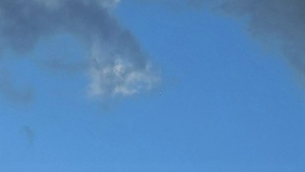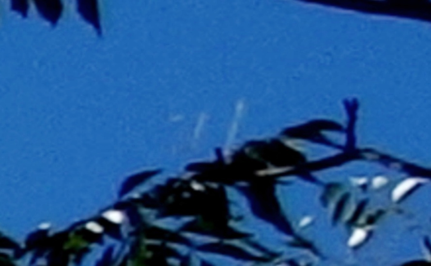 The ship then dropped down below the plane, and in the next frame flashed red close to the treetops, with the plane continuing eastward above it.