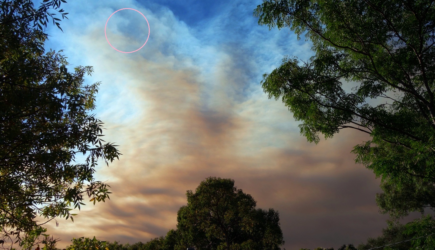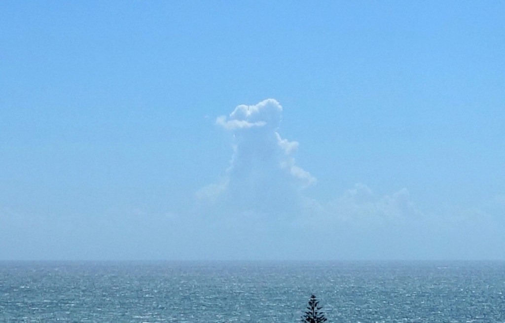 Going coastal on September 26th, this unusual cloud-form grew just above the ocean at Scarborough, Perth, in which you can perhaps see an angelic embrace, with the rim of a disc-shaped ship peeking from the ”angel’s forehead” in the cloud.