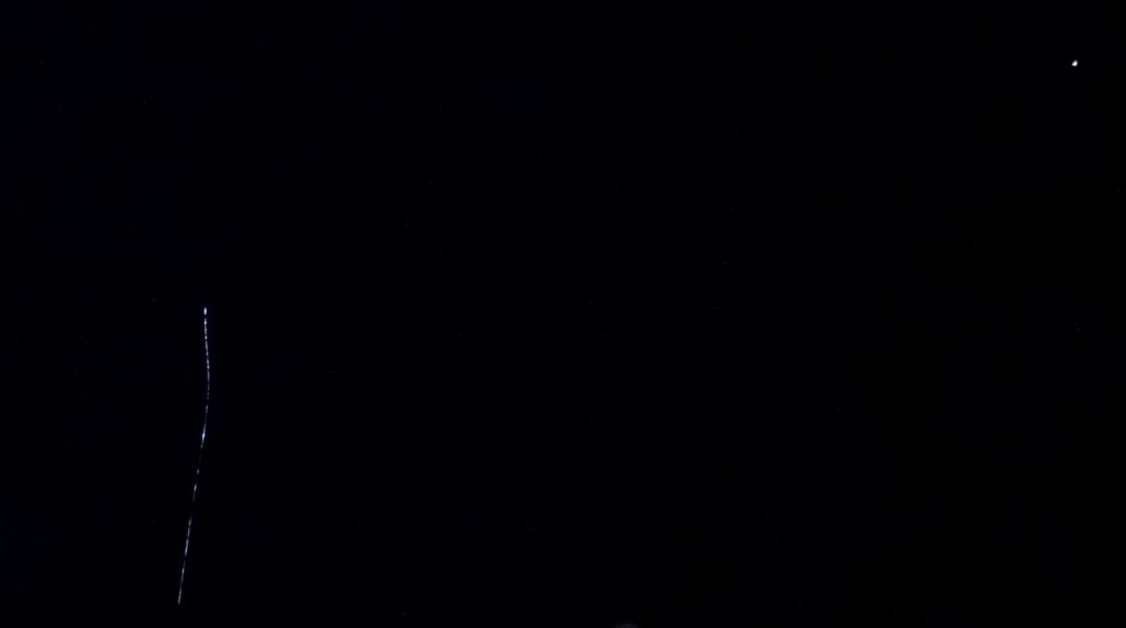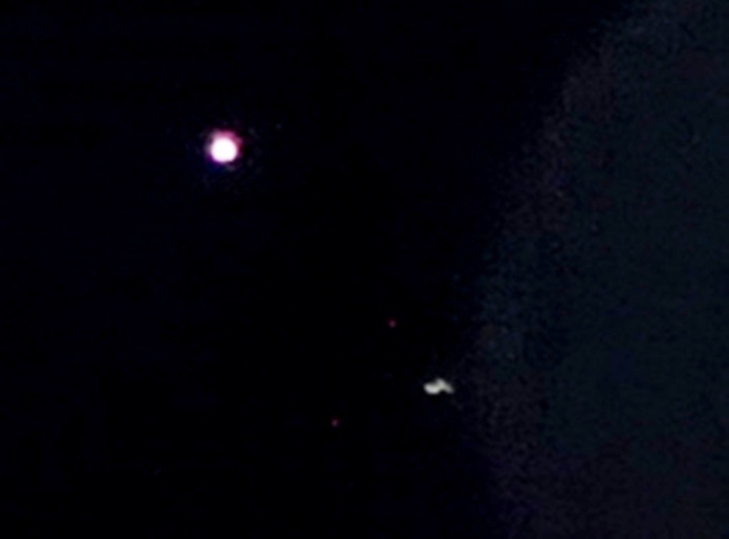 Brighter still, flashing in straight alignment to Jupiter (the third ship was out of frame to the left of Jupiter).