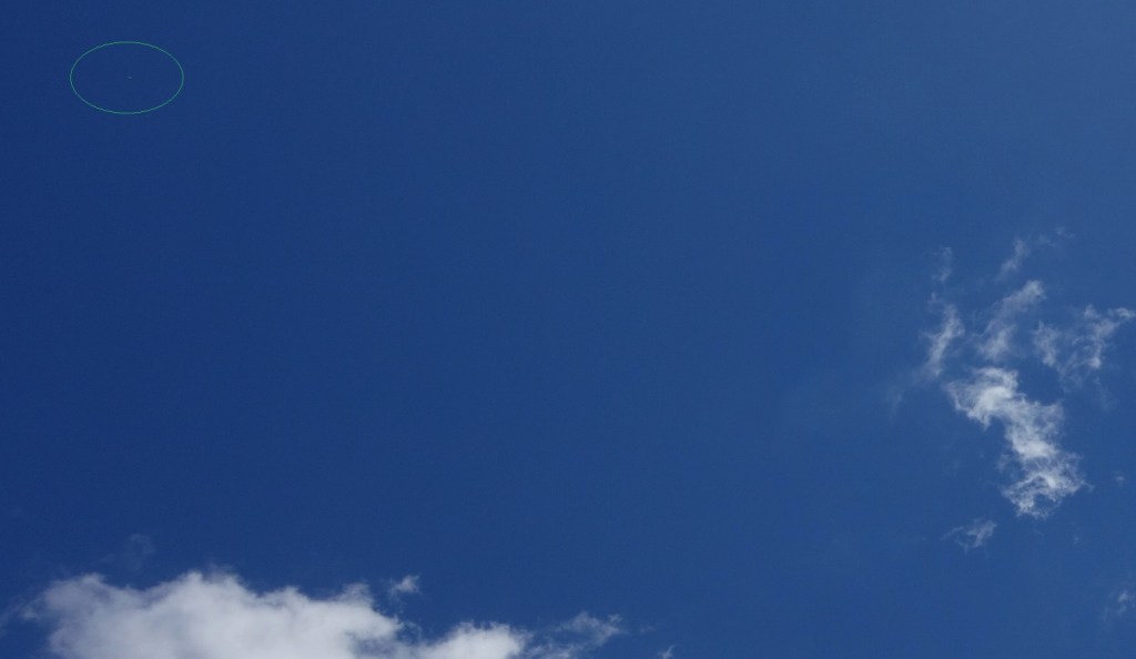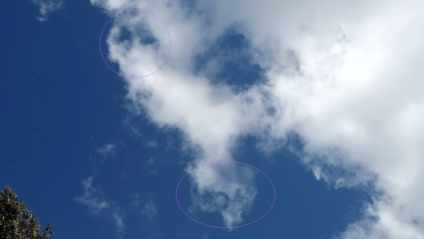 The following day, June 19th, as energies kept clearing from the astral/etheric layers, a pair of hawks appeared ‘out of nowhere’, flying around the shape of a doorway that formed in a cloud. In the second photo, a small craft (unmanned device) popped into view as a black rectangle, and in the third photo, it was moving toward the doorway/portal, before being sucked through it and disappearing. I’ve circled the device, the portal, and a softly formed feline face representing Lyran/Antarian feline star family, all on a straight alignment. Finally, the hawks swept back in front of the portal, before it too disappeared.