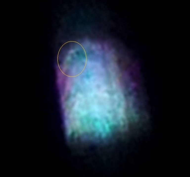 Again close to Alpha Centauri and the Southern Cross, the next two photos show emanations from firstly, a portal, a secondly, from within a ship. In the portal, just below Alpha Centauri, is a very clear green bird-being with a ‘duck-like’ face, literally placing itself in the way of a mass of shadow energies, barring them entry into this galactic region. Thank you, feathery friend(s)!