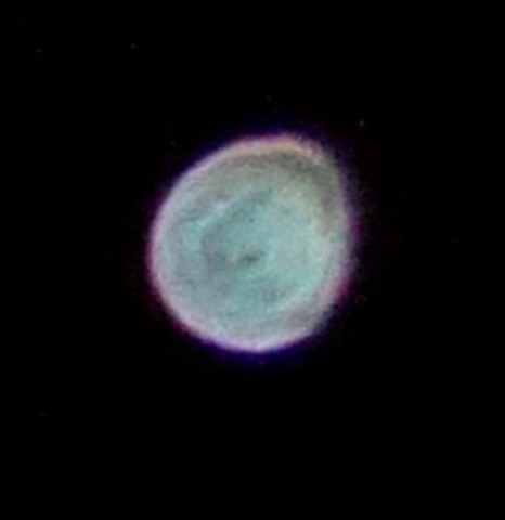 Again the next night, November 15th, ships twinkled along the same alignment, closing with this gorgeous purple emanation above the Saturn-Jupiter-Moon alignment. Enlarged, forms are softly visible, particularly at the lower right of the lightship.