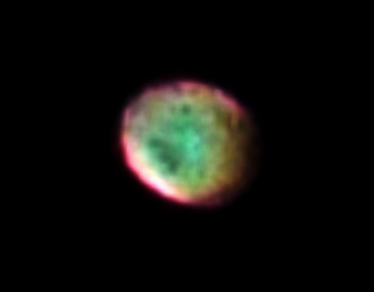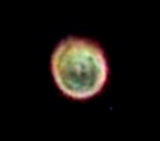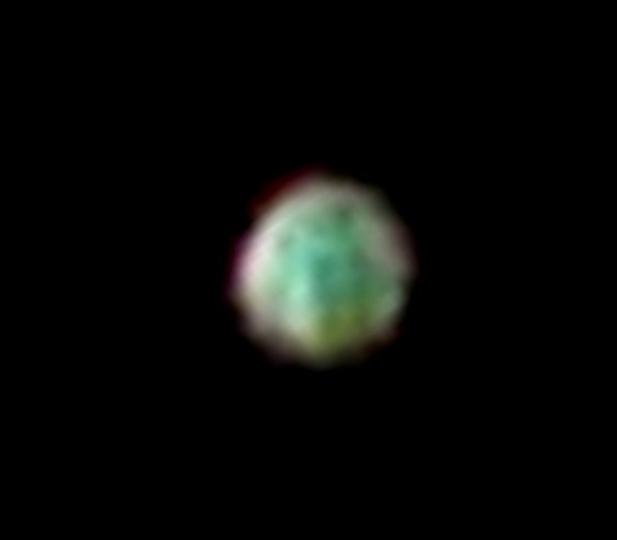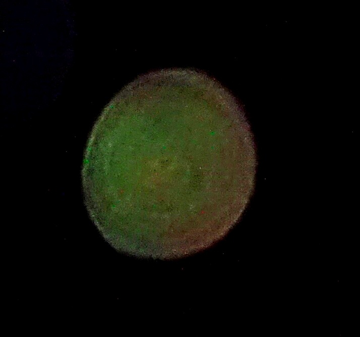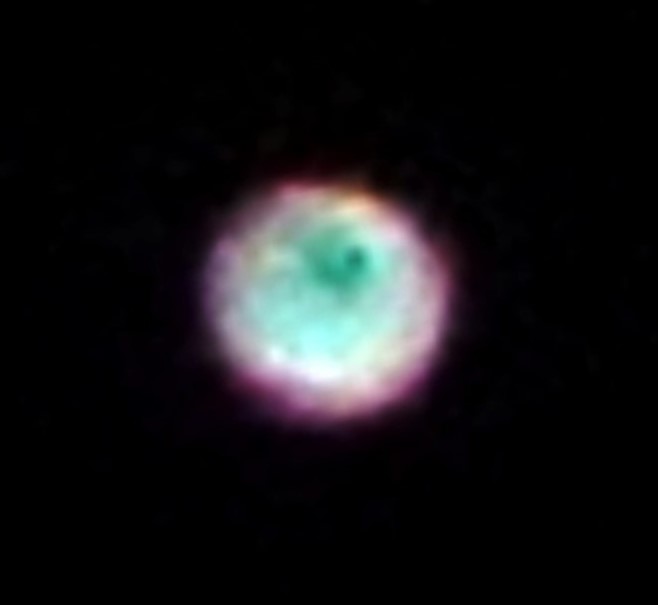 Still on the 7th, here’s one of the ships directly below Saturn, triangulating with Jupiter, appearing as a soft green flash. When enlarged, this beautiful ship (signalling that it hails from the Saturn Command) shows a pearly green-gold colour.