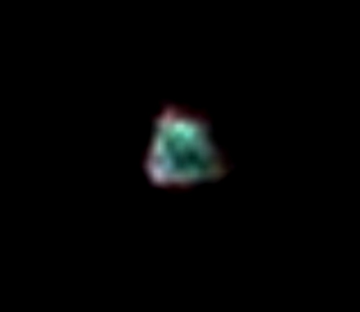 Then at night, this ship flashed several times as it flew across the southern sky (back and forth near Alpha Centauri and the Southern Cross, with the ship from left to right of them). In the enlargement below, it can be seen as a luminous pyramid-shaped ship of soft golden hues.