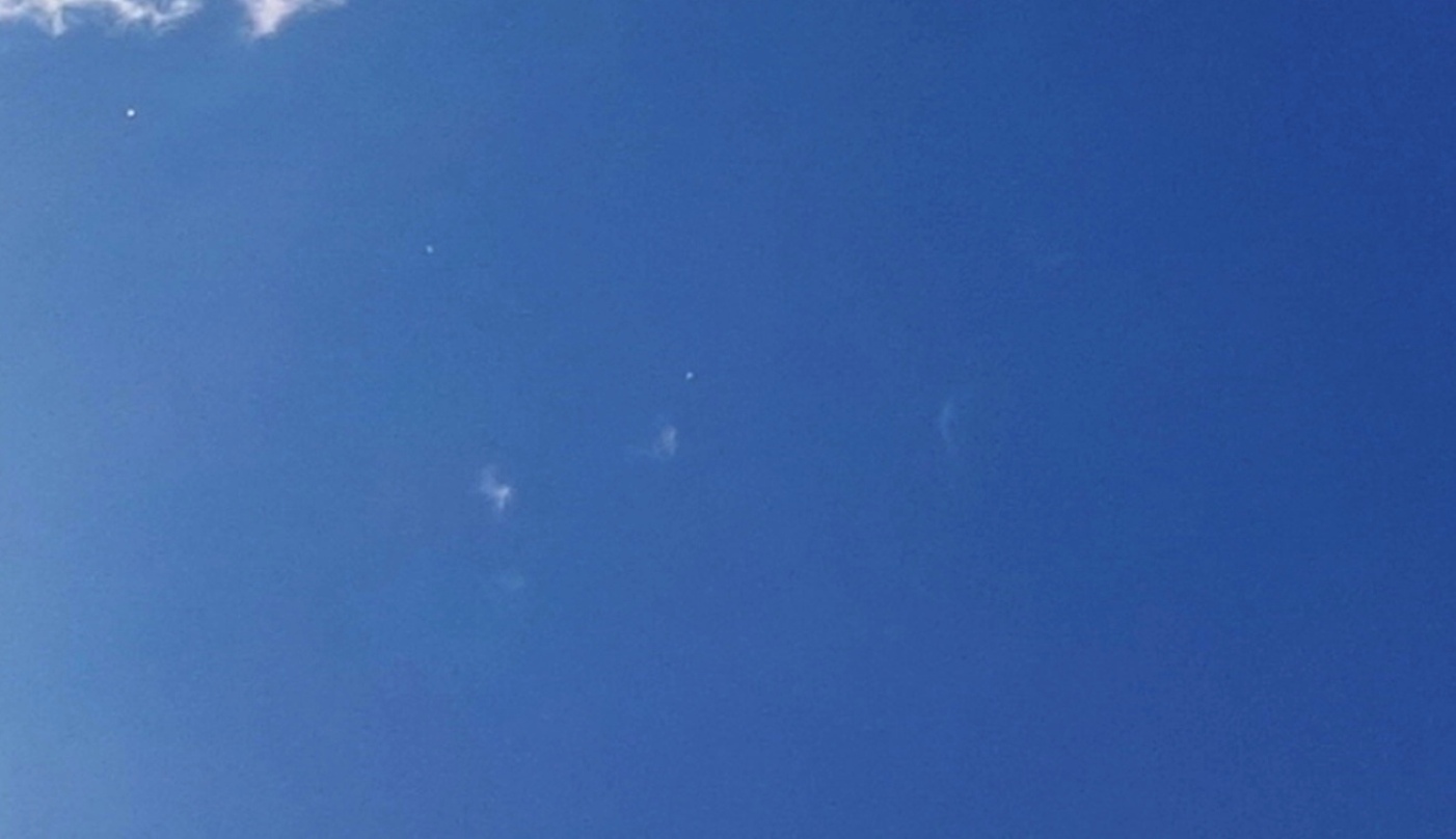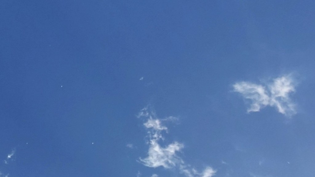 Several small pod-ships appeared briefly in the day sky of September 13th, beginning with a slight twinkle from Arnap zipping out from a cloud. He was then joined by two lovely star brothers and they flew together, triangulating, then in a straight line.