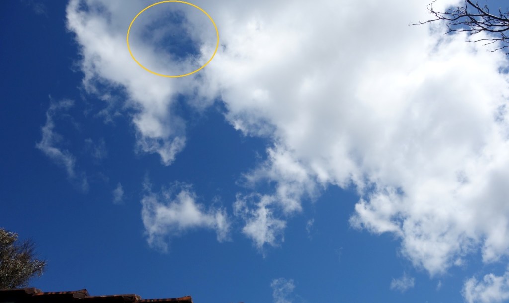 On April 25th, a clear ‘disc-hole’ formed in a cloud bank, while a distinct doorway formed nearby (with a letter ‘J’ at its left). ๐