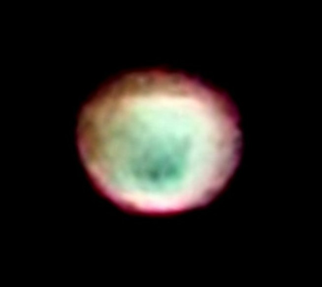 On September 9th, the Andromedan ship Serenity gave this stunning window view, left of the Saturn-Jupiter-Moon alignment that night, with a blue being clearly seated in the foreground, with a dark green being to the left.