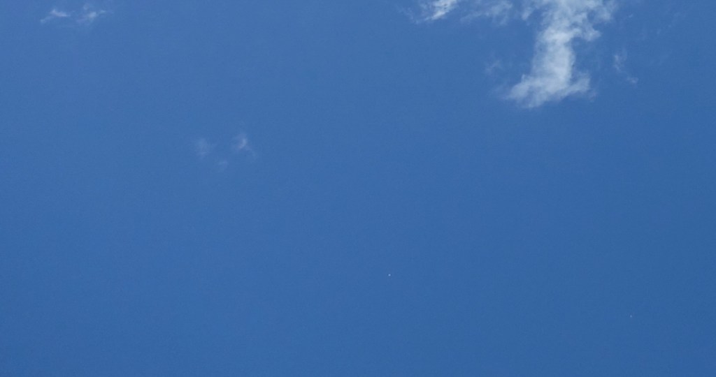 On May 11th, the Lei’hua again gave a beautiful open flyover, which I’ve filmed in three parts. This time she decloaked near Sirius and flew toward Procyon, then in the third section of footage, a plane came into the frame above the Lei’hua. You can see its regularly flashing lights in contrast to the steady, unblinking light of the Lei’hua…their/our way of saying, ‘See, we’re not a plane.’