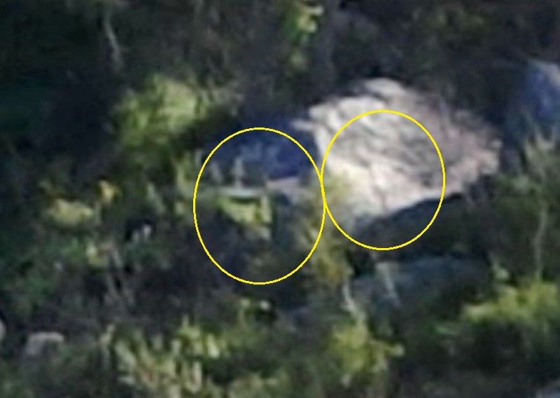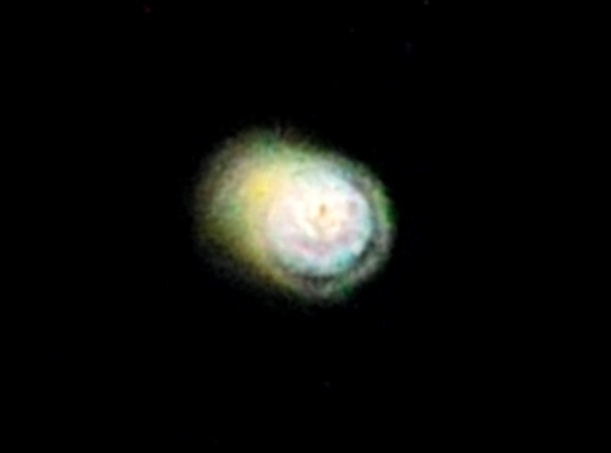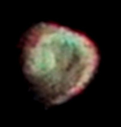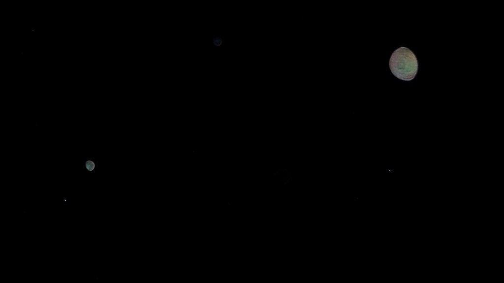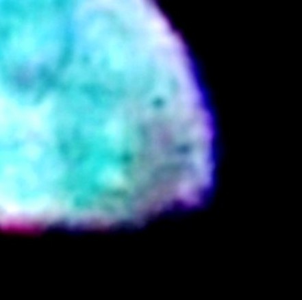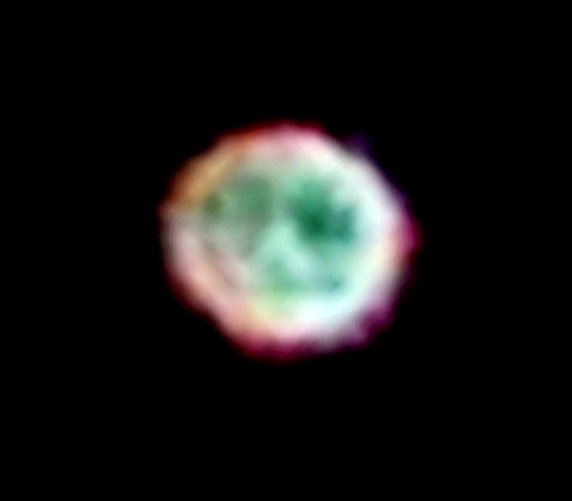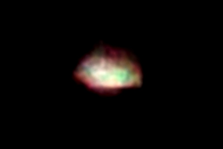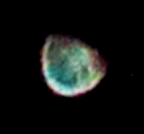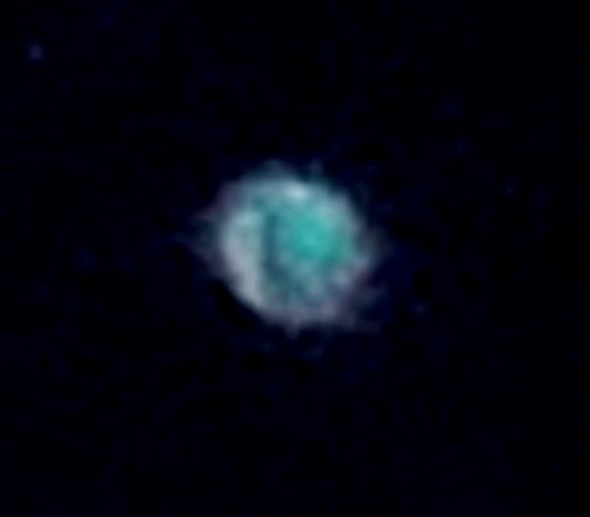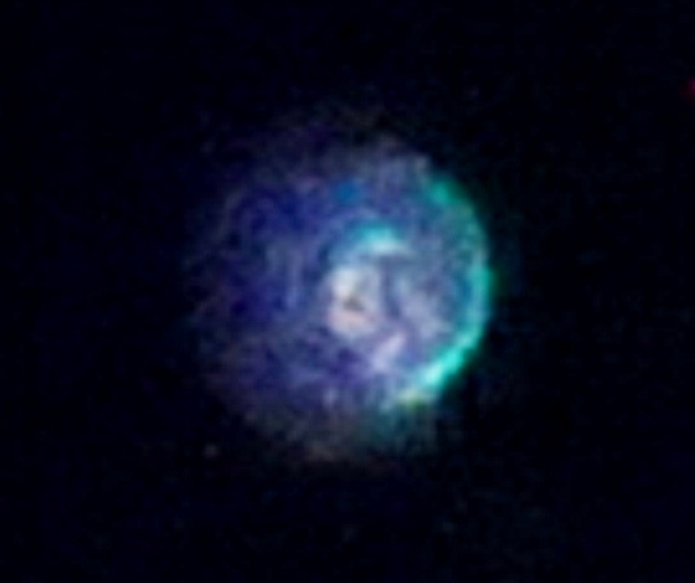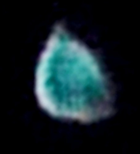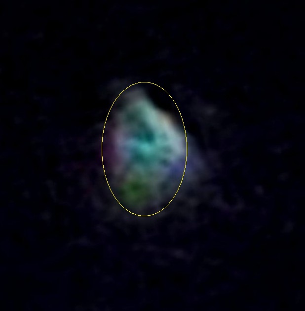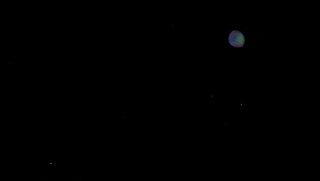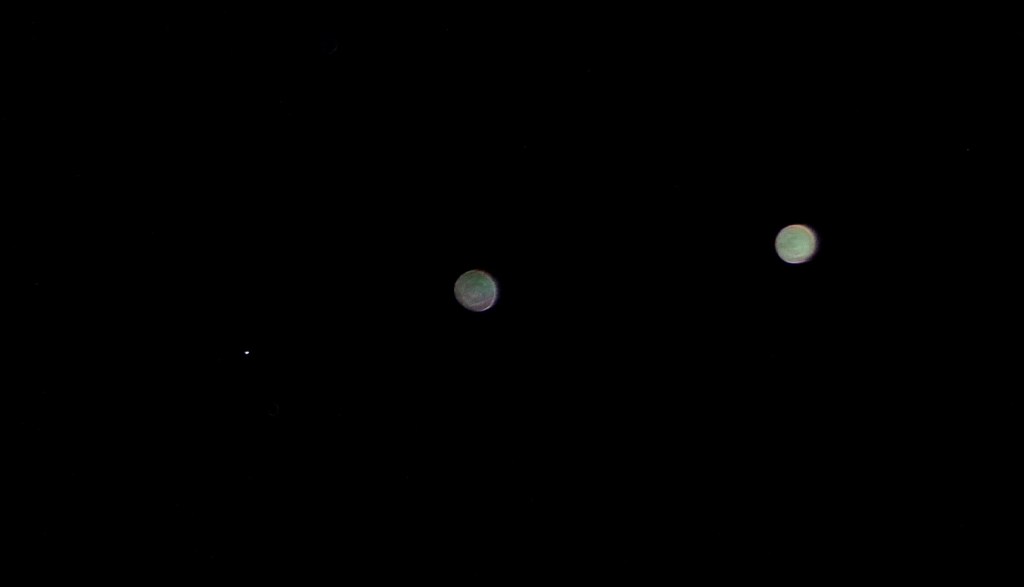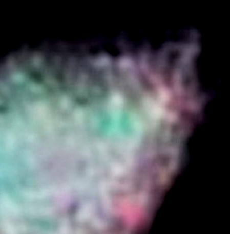 This was followed by a line-up of orbs between Sirius and Canopus, with red orbs between the two stars, and a green orb to the right of Canopus. Enlarged, there are figures visible in the green light emanation, quite clear with the contrast increased.