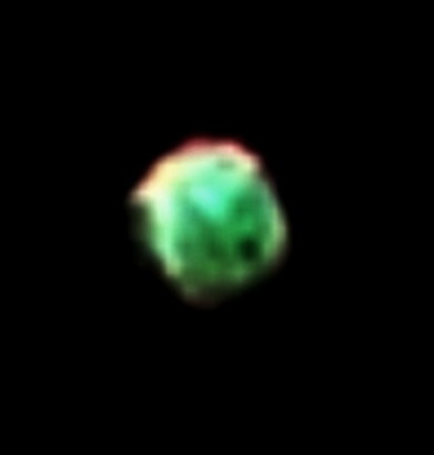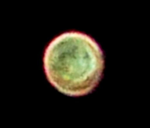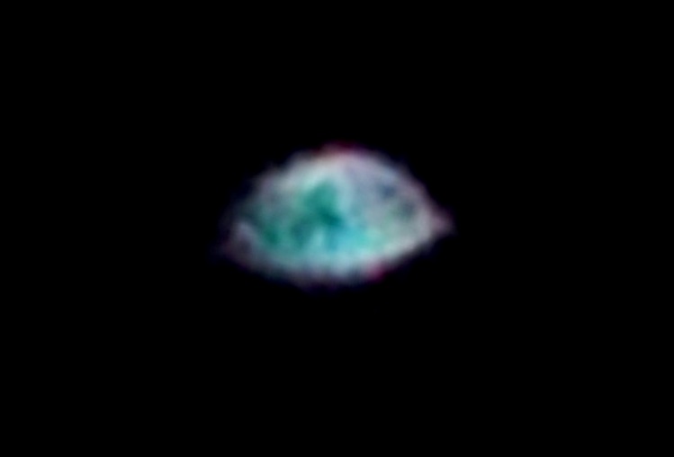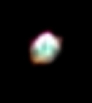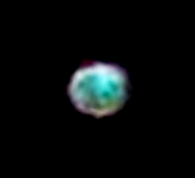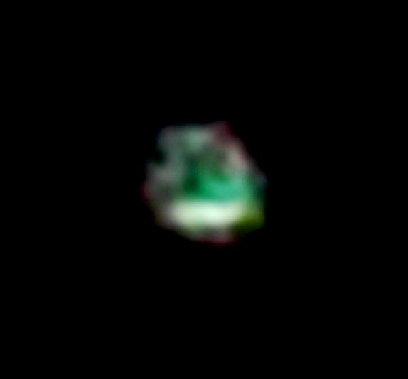 On October 24th, folllowing another brilliant flash from the Lei’hua, this bright orb appeared in alignment with the Moon and Saturn, then resolved into a softly luminous ship-form, with a large green Buddha-like figure (I see/feel this as a ”Green Tara” emanation) haloed in white light defined within it.