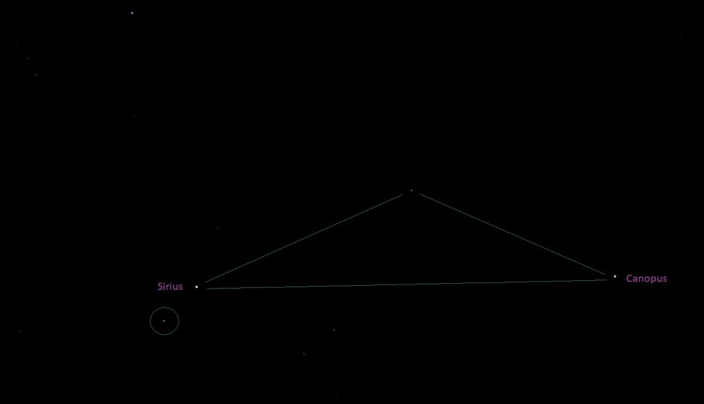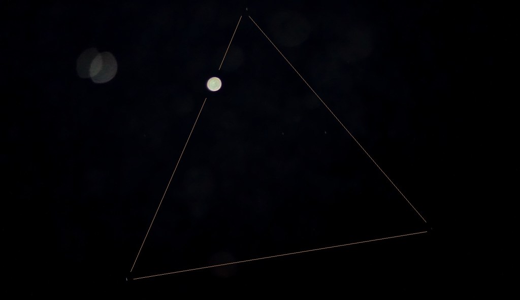 This orb then flashed above Canopus and Sirius, forming a triangle with the two stars, with forms subtly visible within orb.