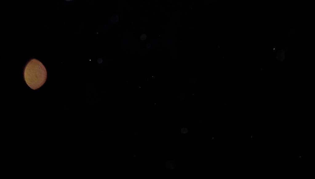 That night there were orbs and ships moving between the stars Canopus and Achernar in particular, flickering around and between them, with a few brighter flashes. Here’s one, showing an interior scene, with a golden-white sphere on a pale gold area, with clear structural shapes or ‘walls with windows’ in the background. This ship showed its exterior shape in one photo, as rectangular, with a pinkish coloured emanation (or magnetized spherical ship) on/from its underside. A beautiful golden orb then flashed right next to Canopus, followed by a blueish orb abive Achernar.