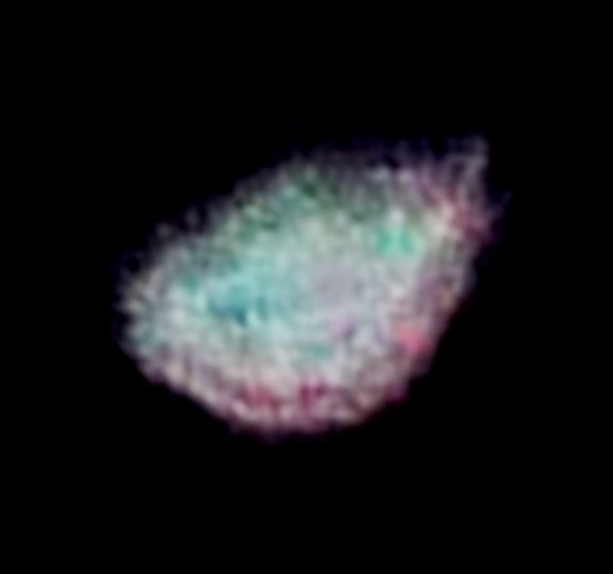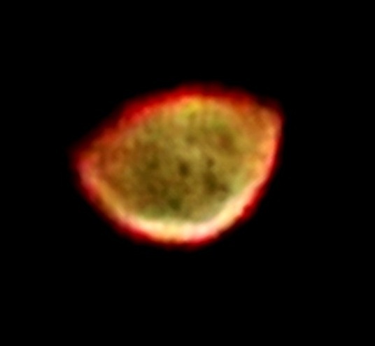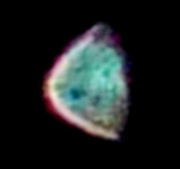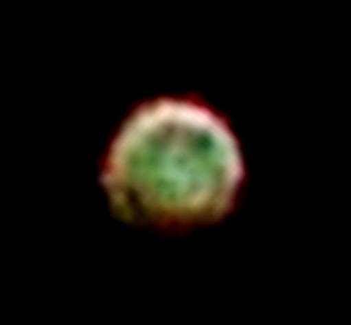 The orb grew larger as it floated closer to Alpha Centauri, with many overlaid forms and faces, with a rosy-red feminine face forming in the left area of the orb.