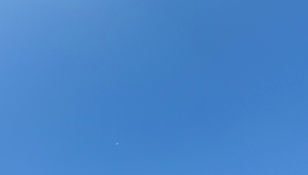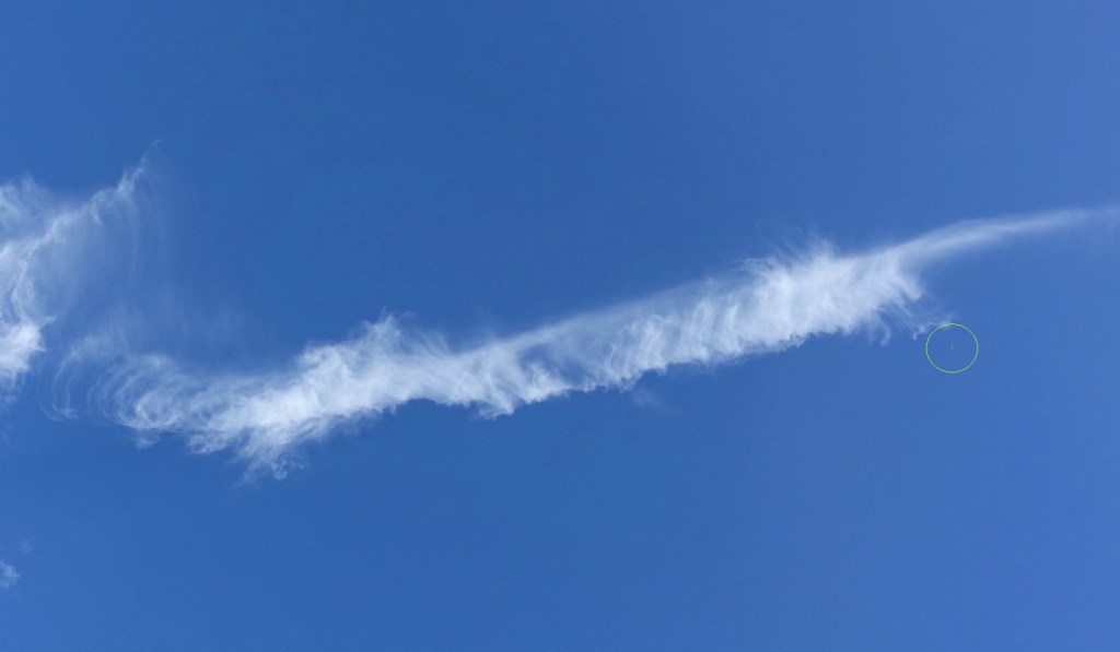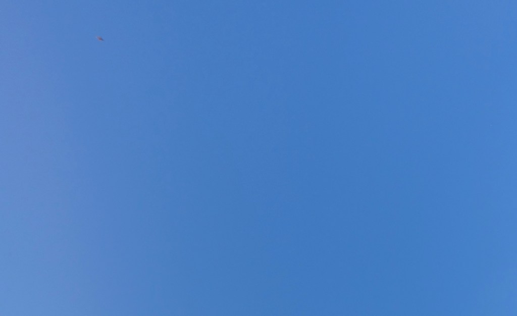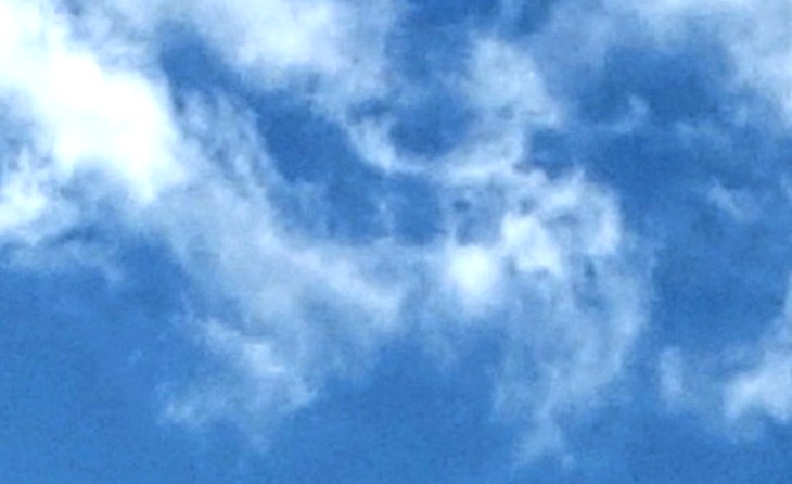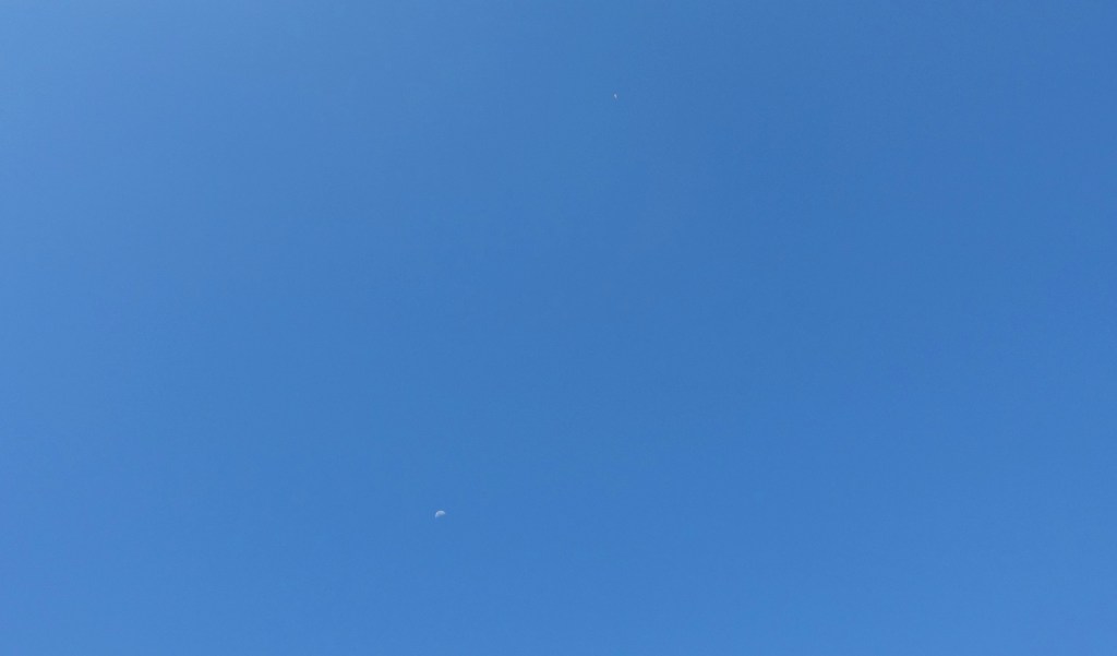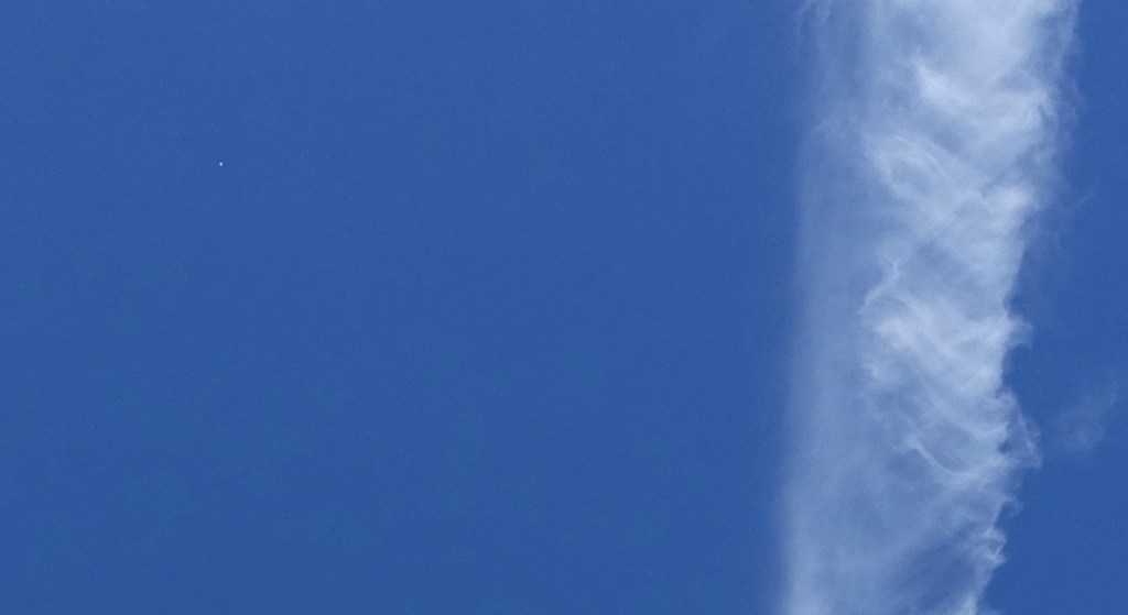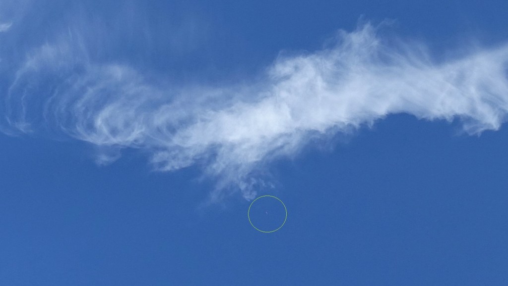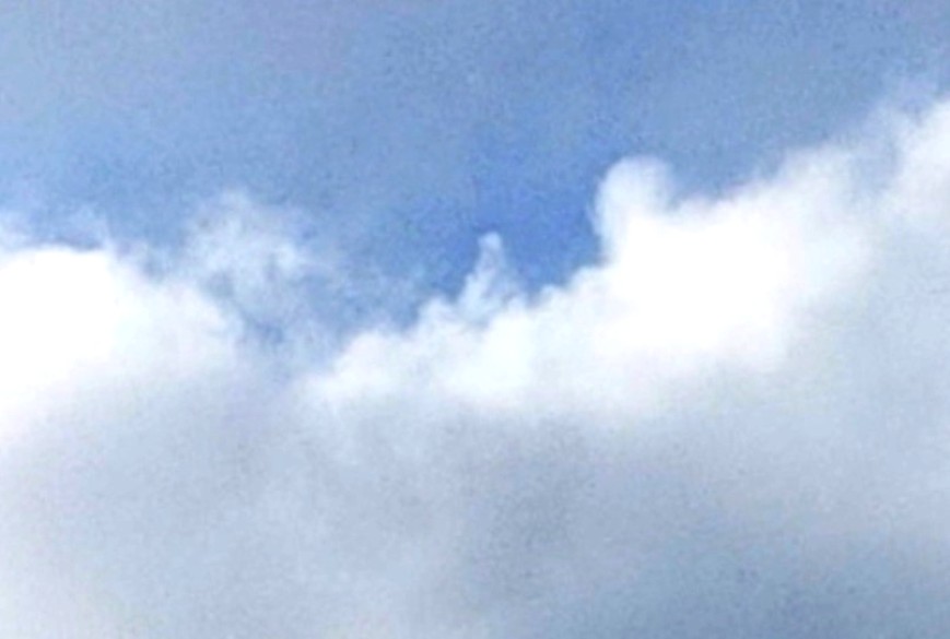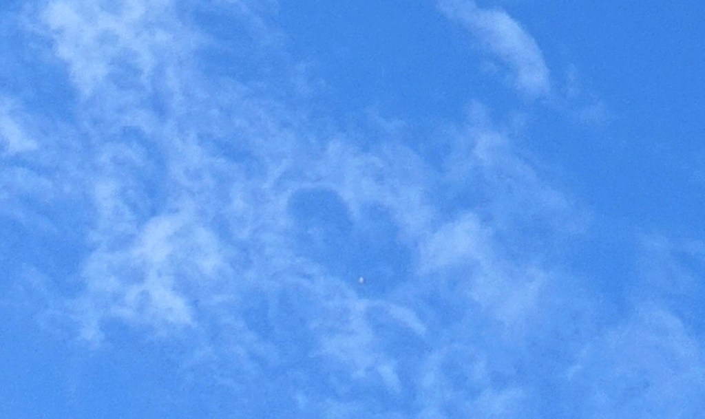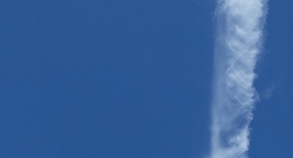 During the morning of January 27th, the sky was busy, firstly with a ship (a golden-white disc again) flashing into view in front of a plane. The plane was visually clear, but in the photo to my surprise looked more like a smudgy dark blue bird shape. Higher overhead, a pair of military jets were passing back and forth, with a helicopter below, it was petty hectic for half an hour or so.