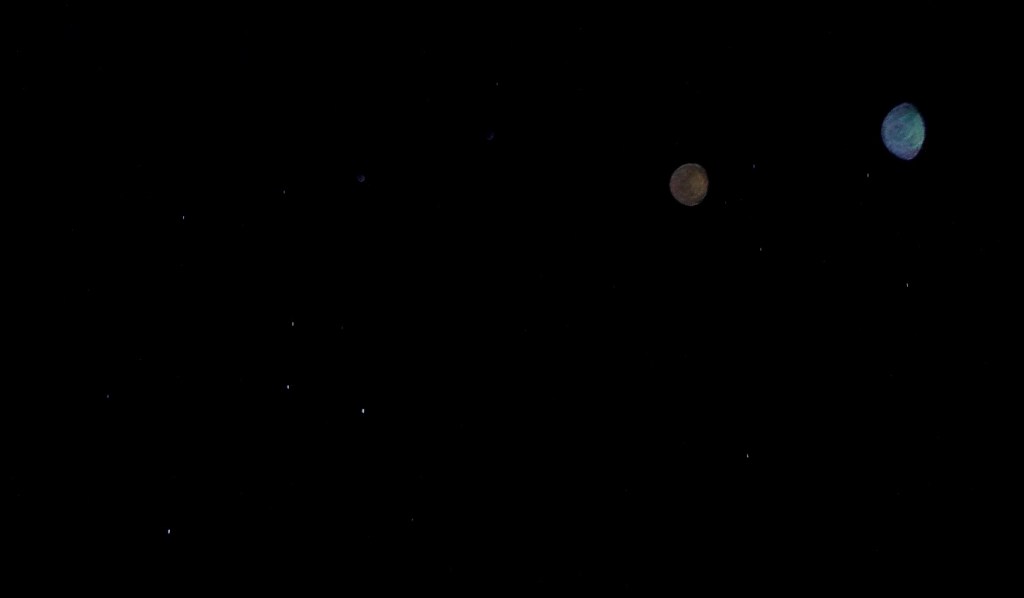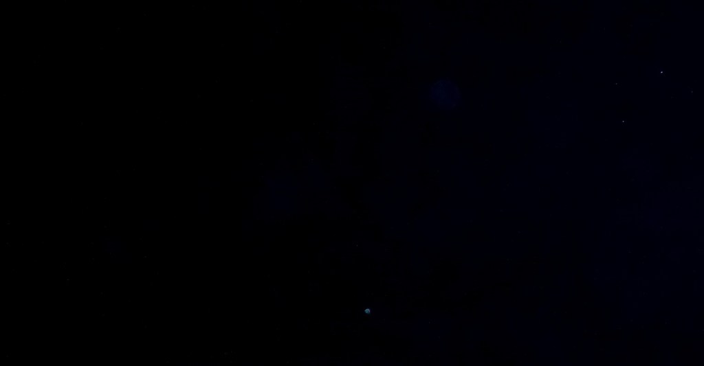 The orb pair then floated over Achernar at the left, and a ship that flashed briefly to the right.